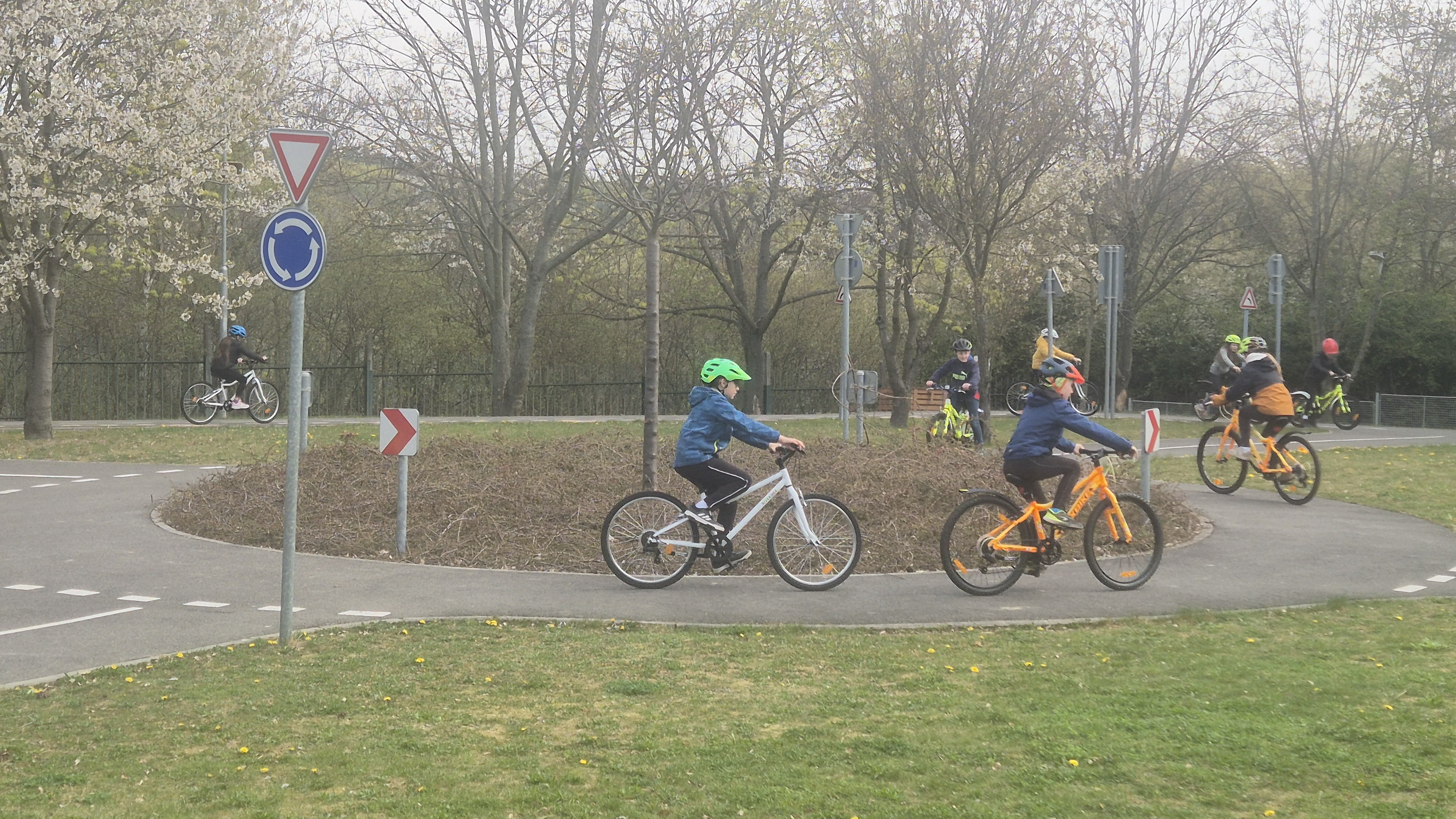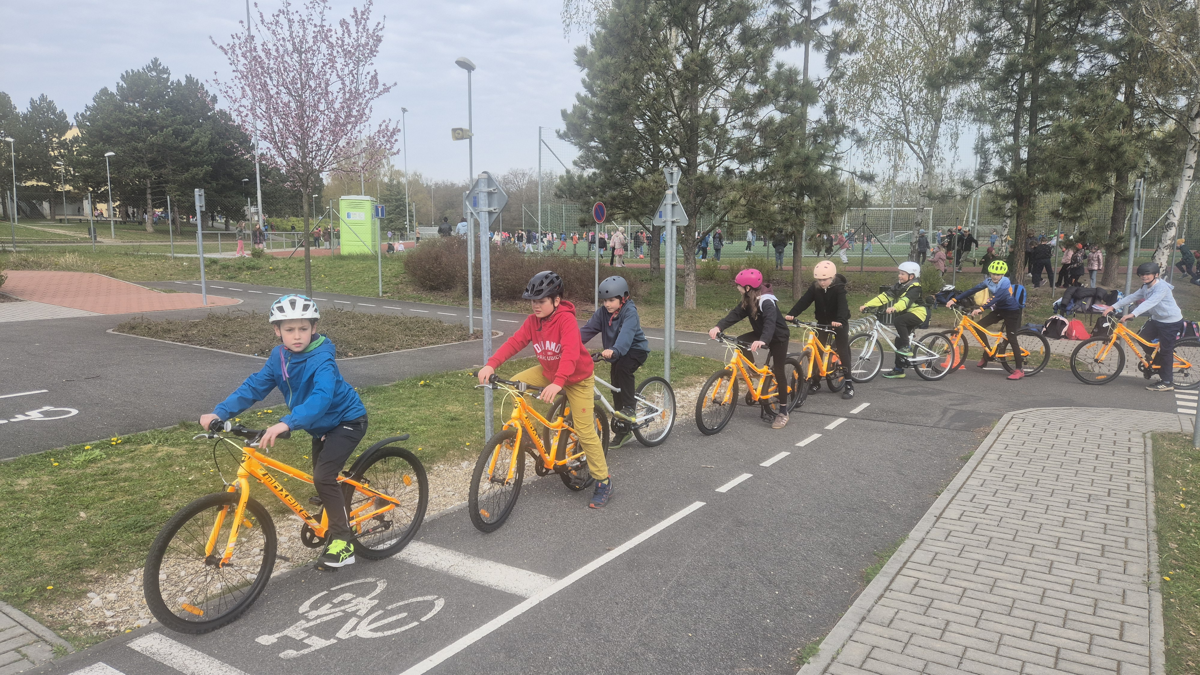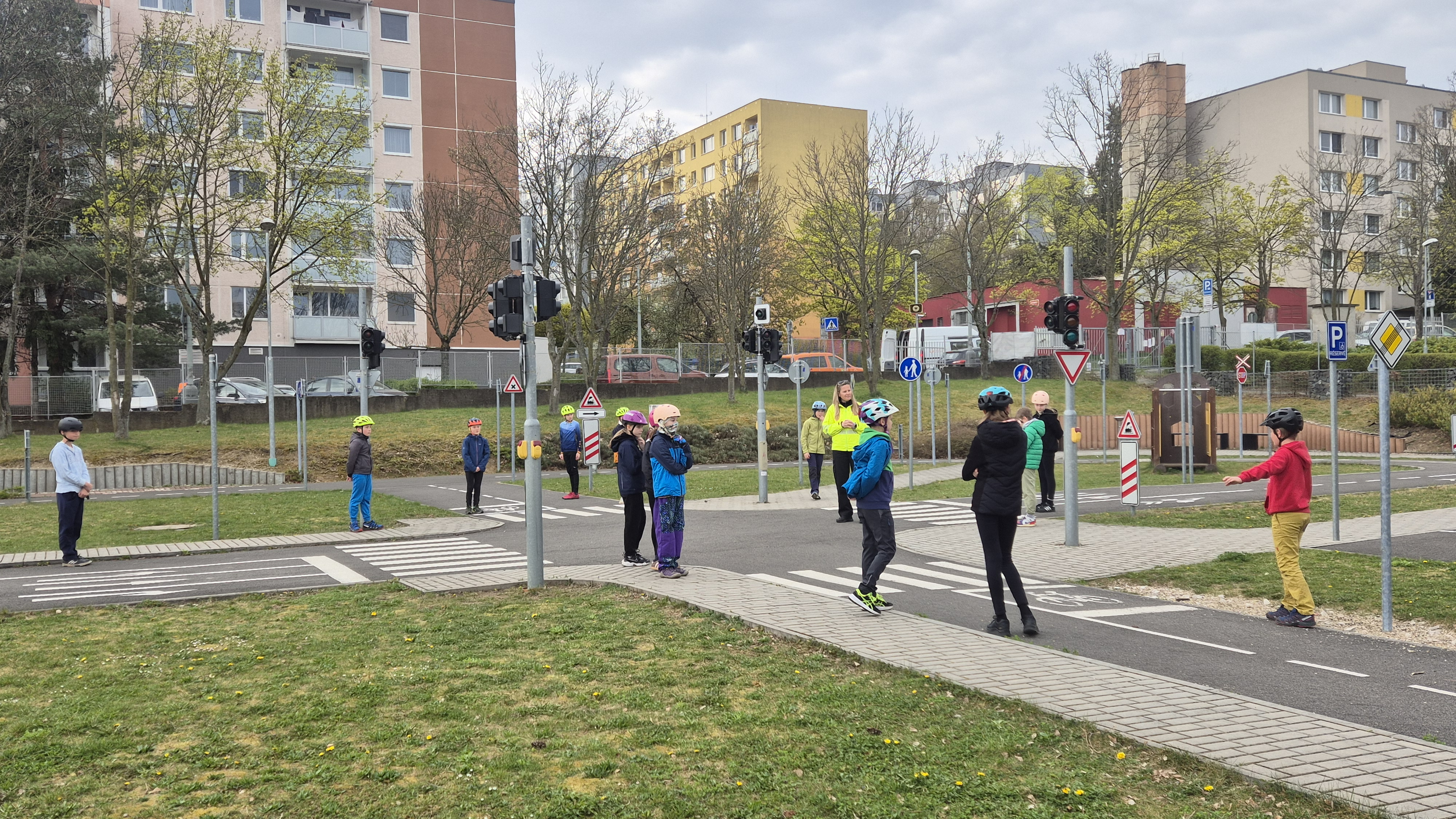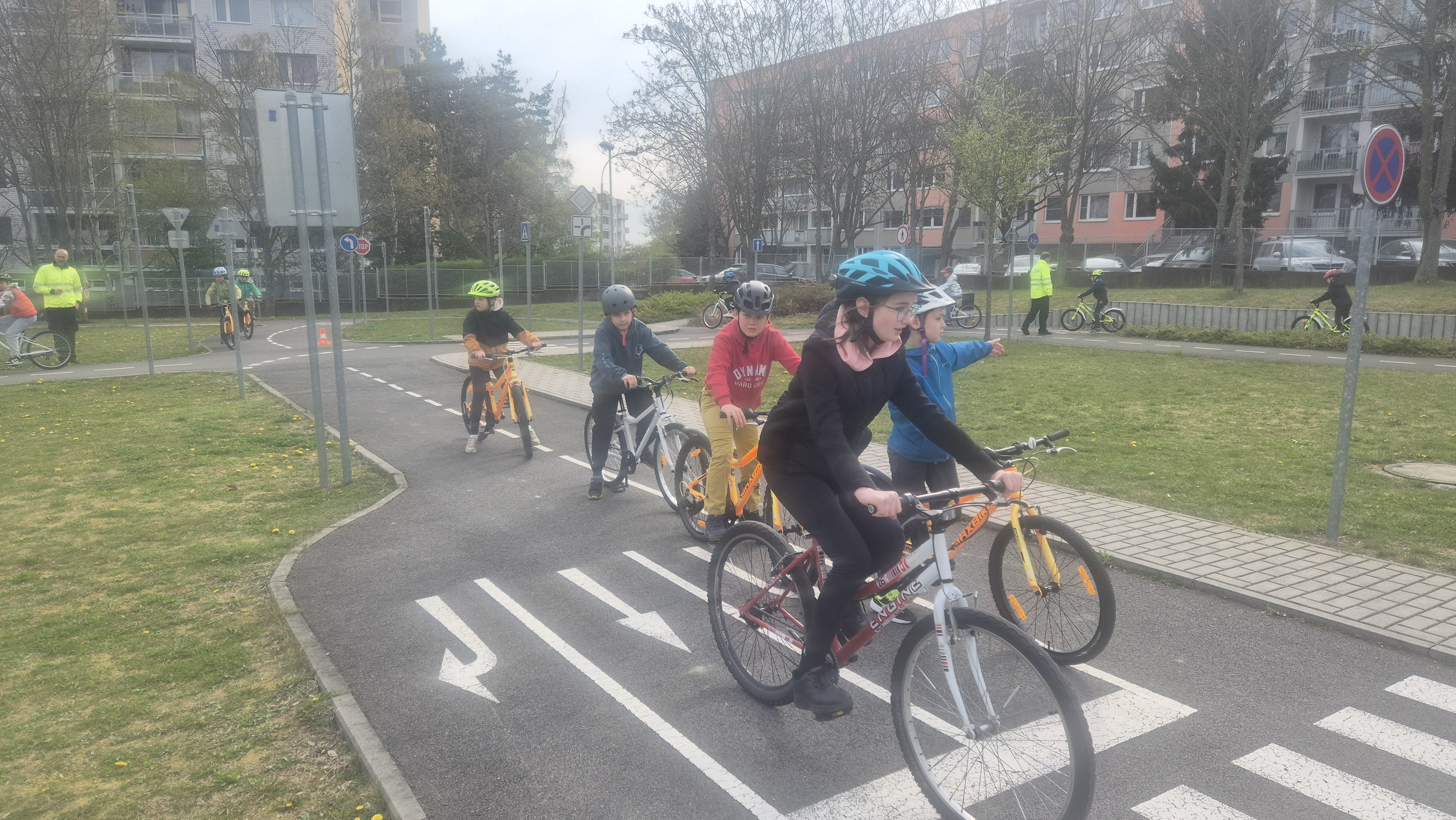 Po správném nasazení helmy jsme společně s policisty procházeli hřiště, připomněli si pravidla silničního provozu i dopravní značky a následně jsme své znalosti a dovednosti předvedli při jízdě na kole.