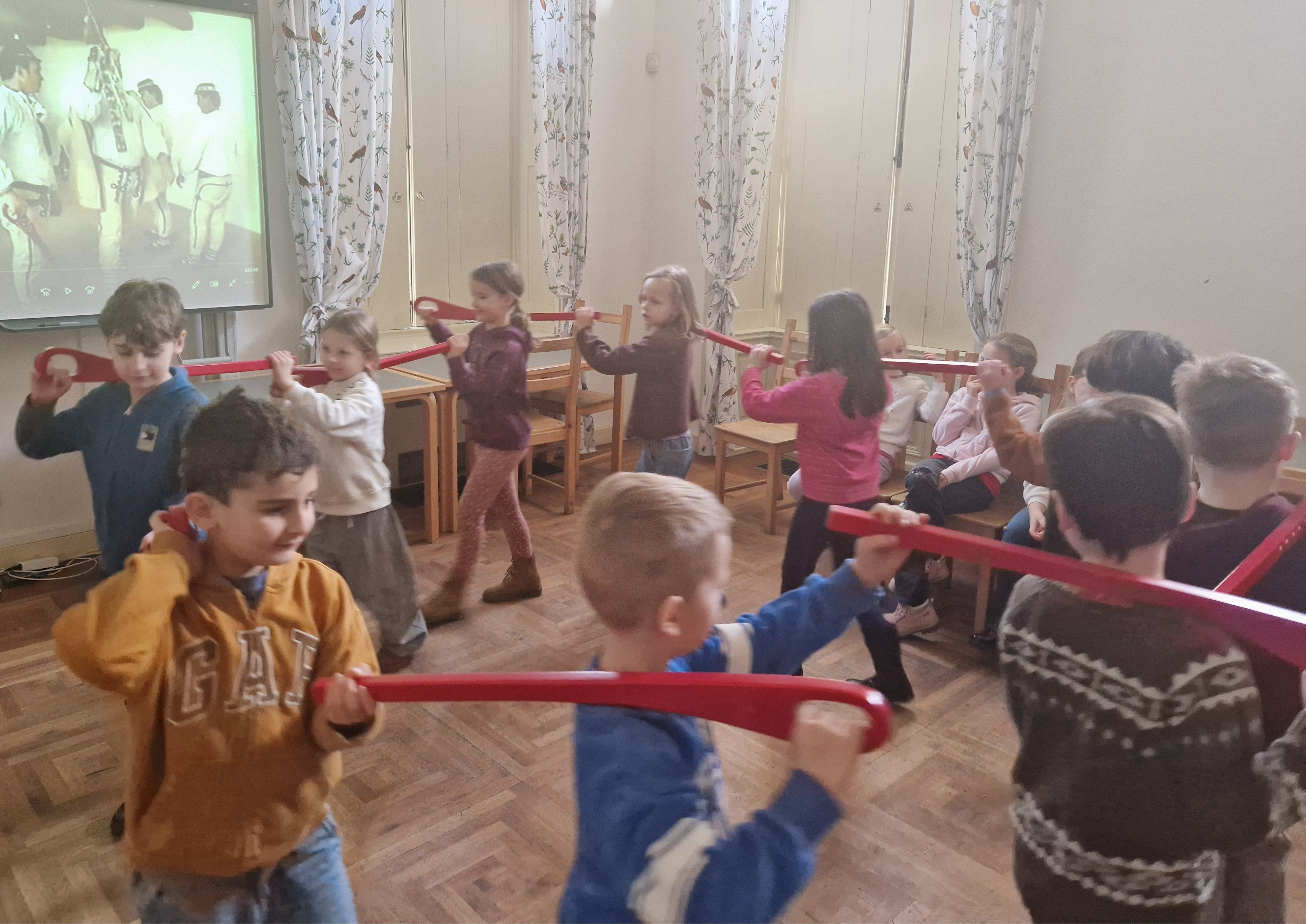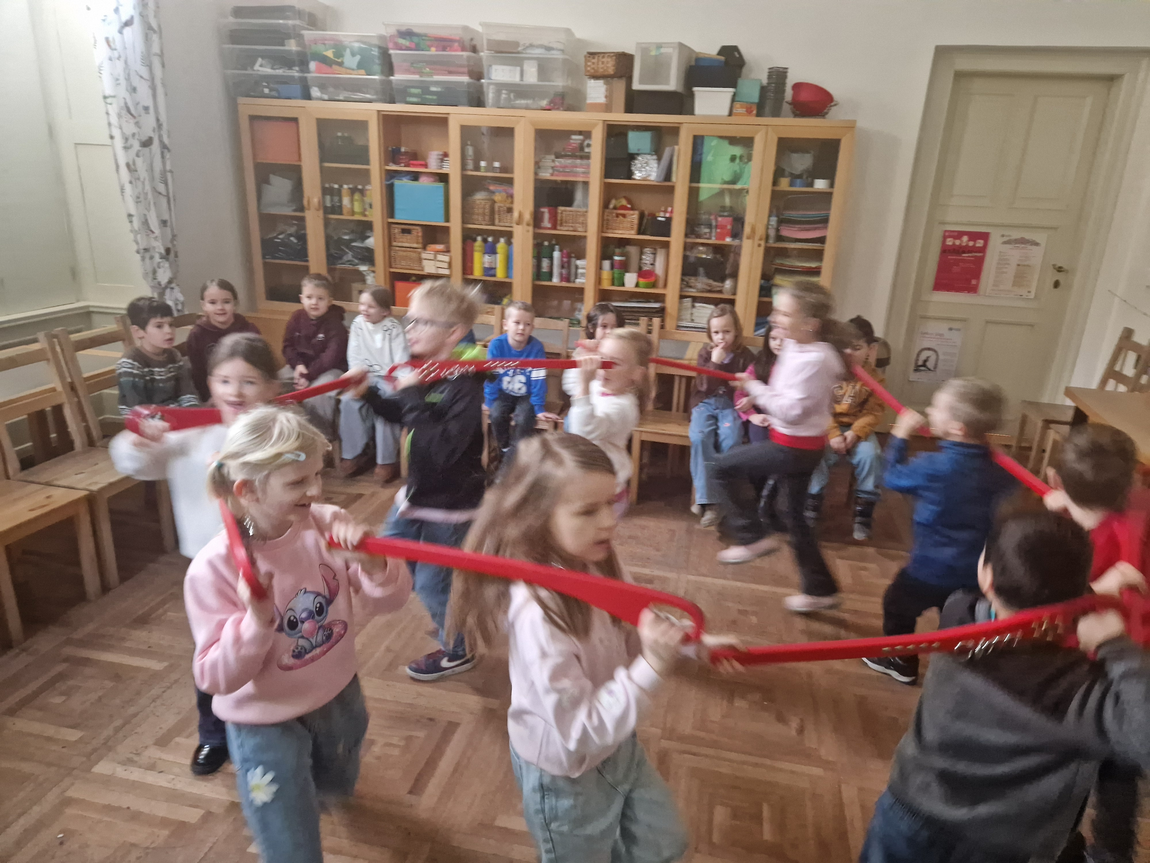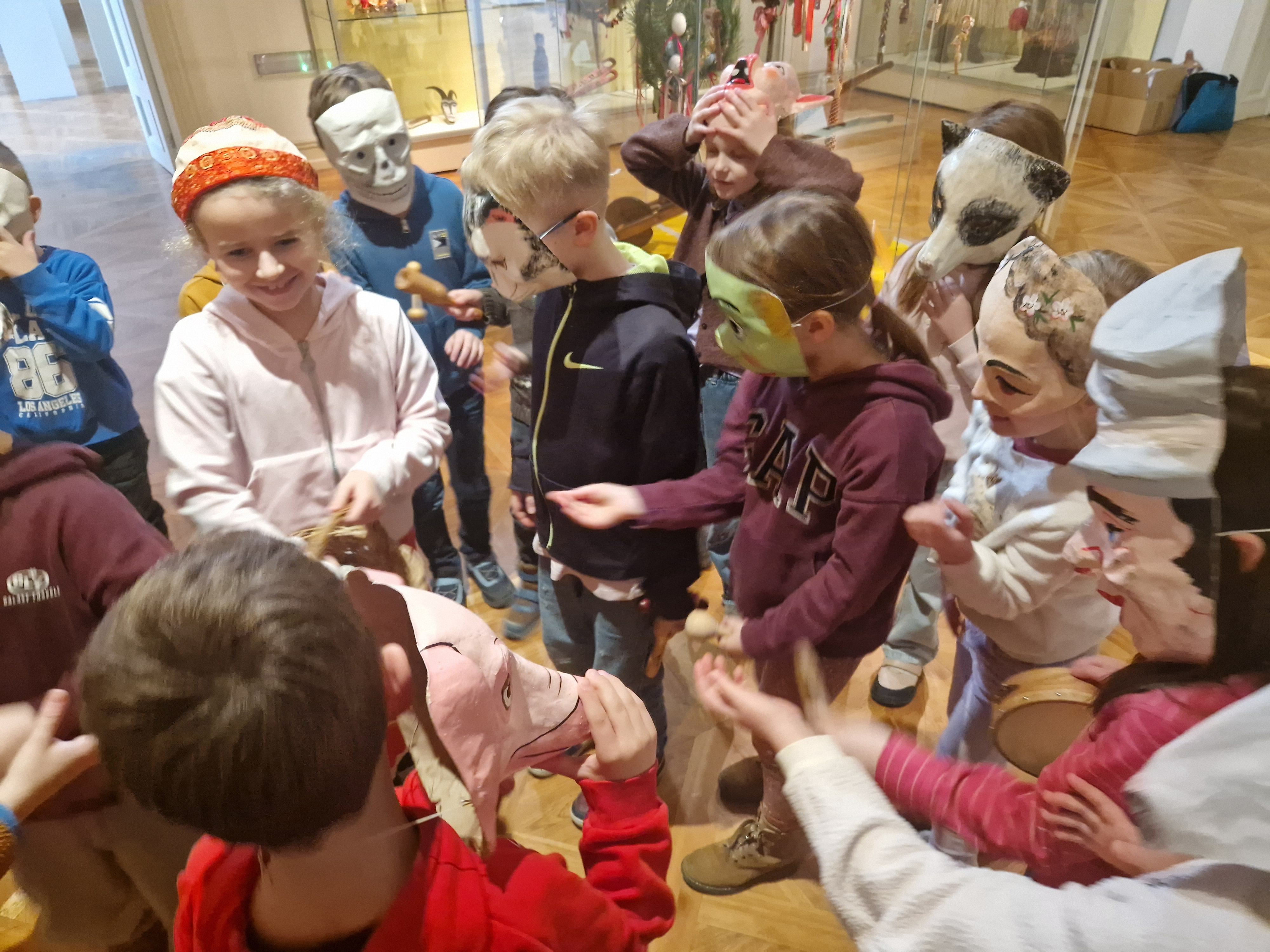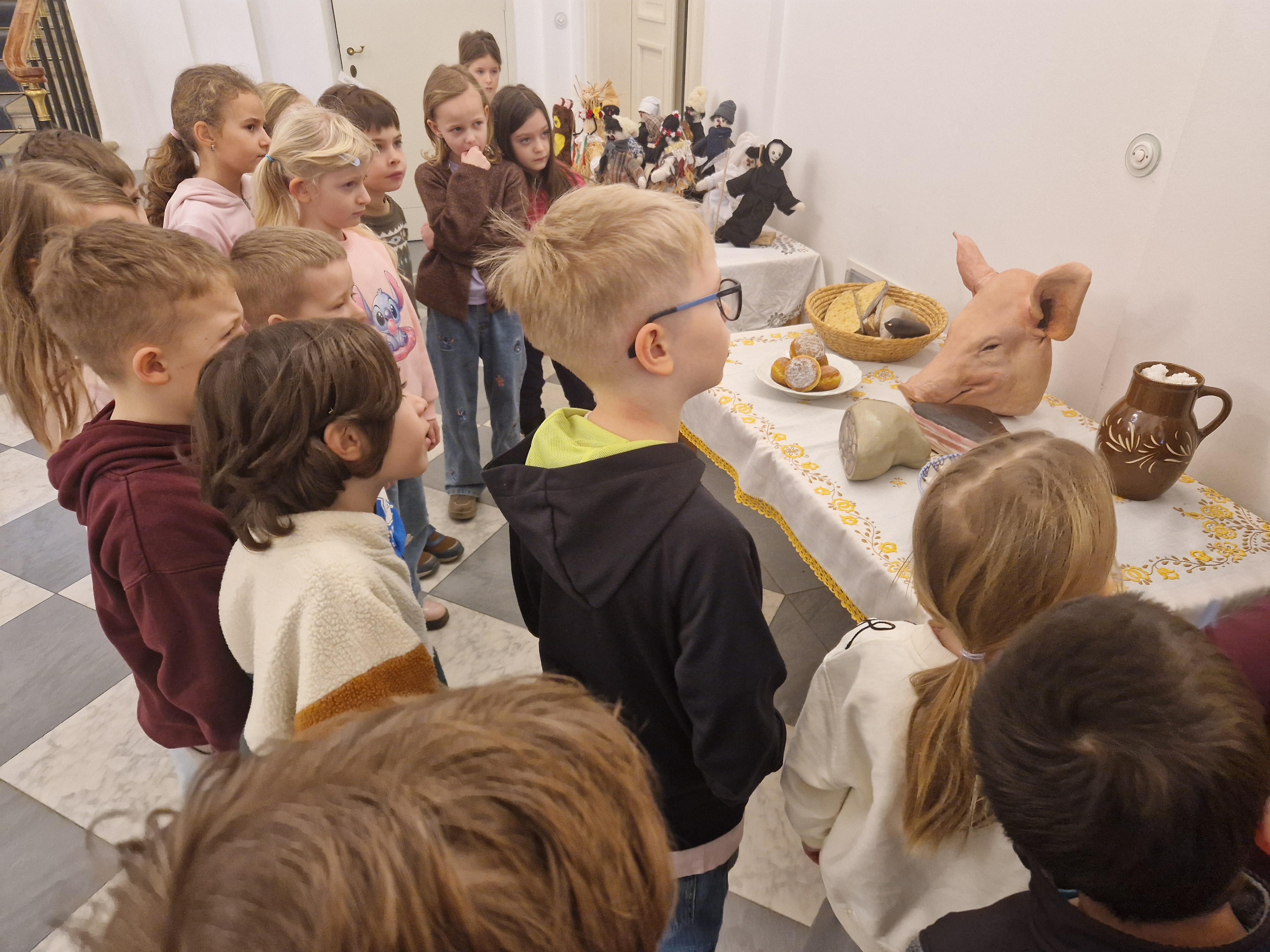 Nejen tuto říkanku, ale i mnoho dalšího ze zvyků masopustu jsme se naučili při návštěvě Musaionu. Vyzkoušeli jsme si i podšable, tradiční tanec spjatý s fašankem na Slovácku. Období masopustu jsme pak ukončili pořádnou oslavou. Veselili jsme se a tancovali na chodbách školy a pořádali průvod maškar parkem Sacré Coeur.