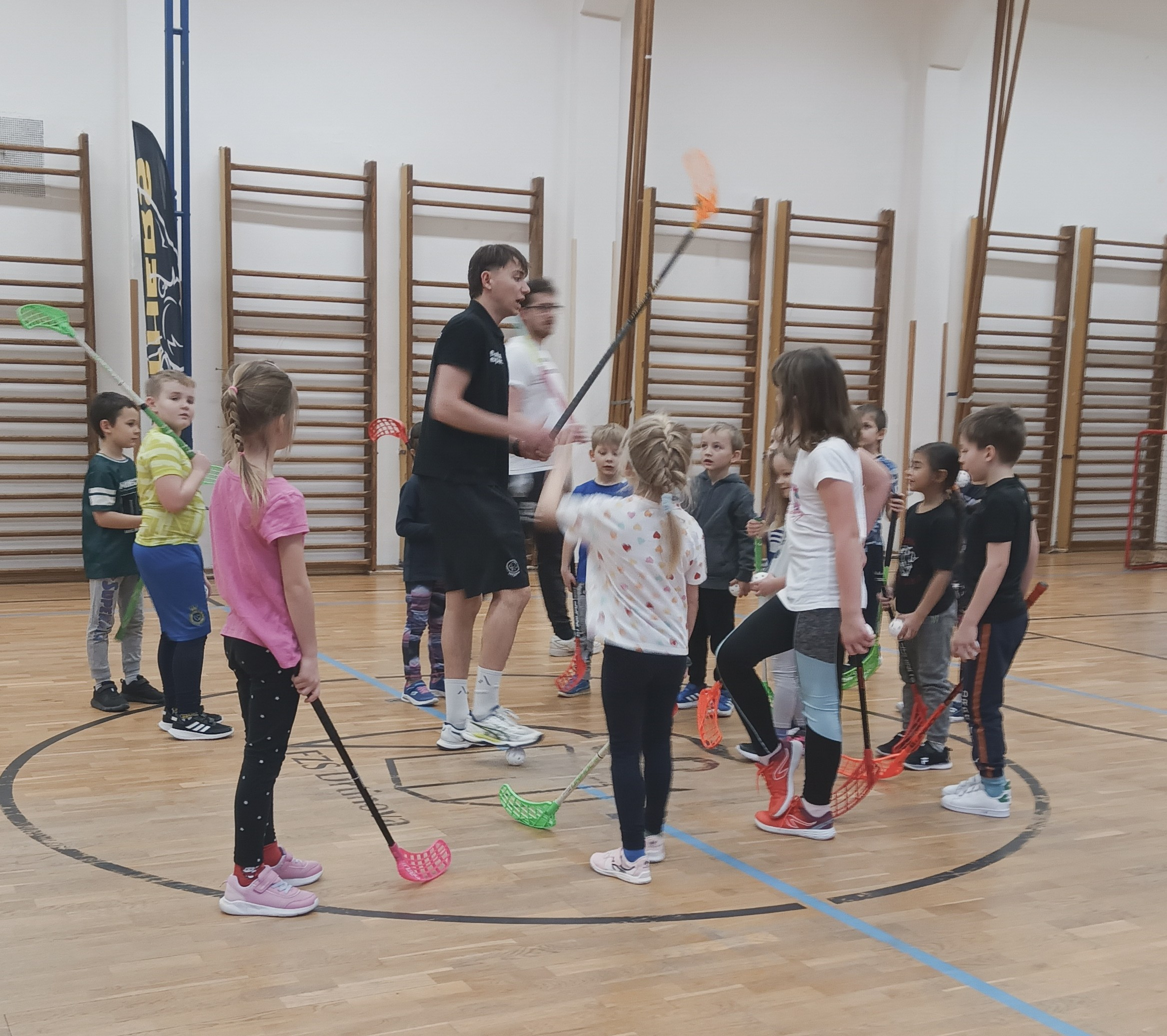 Tak to byla skvělá hodina tělesné výchovy! Měli jsme tu možnost vyzkoušet si florbal s profesionálními hráči. Všichni jsme si hodinu užili a někteří z nás se rozhodli, že se do kroužku florbalu přihlásí.