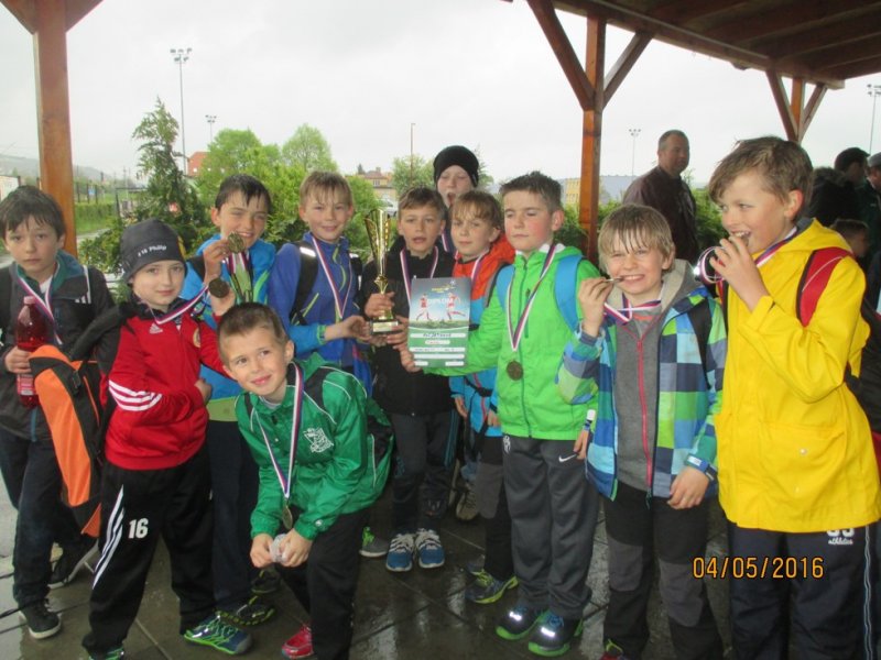 Z naší školy se ve středu 4. května zúčastnili chlapci ze třetích ročníků. Přes nepříznivé počasí a účast 11 silných soupeřů se hochům podařilo po čtyřech vítězstvích a jedné remíze umístit na zaslouženém prvním místě a přivézt tak do školy zlatý pohár.