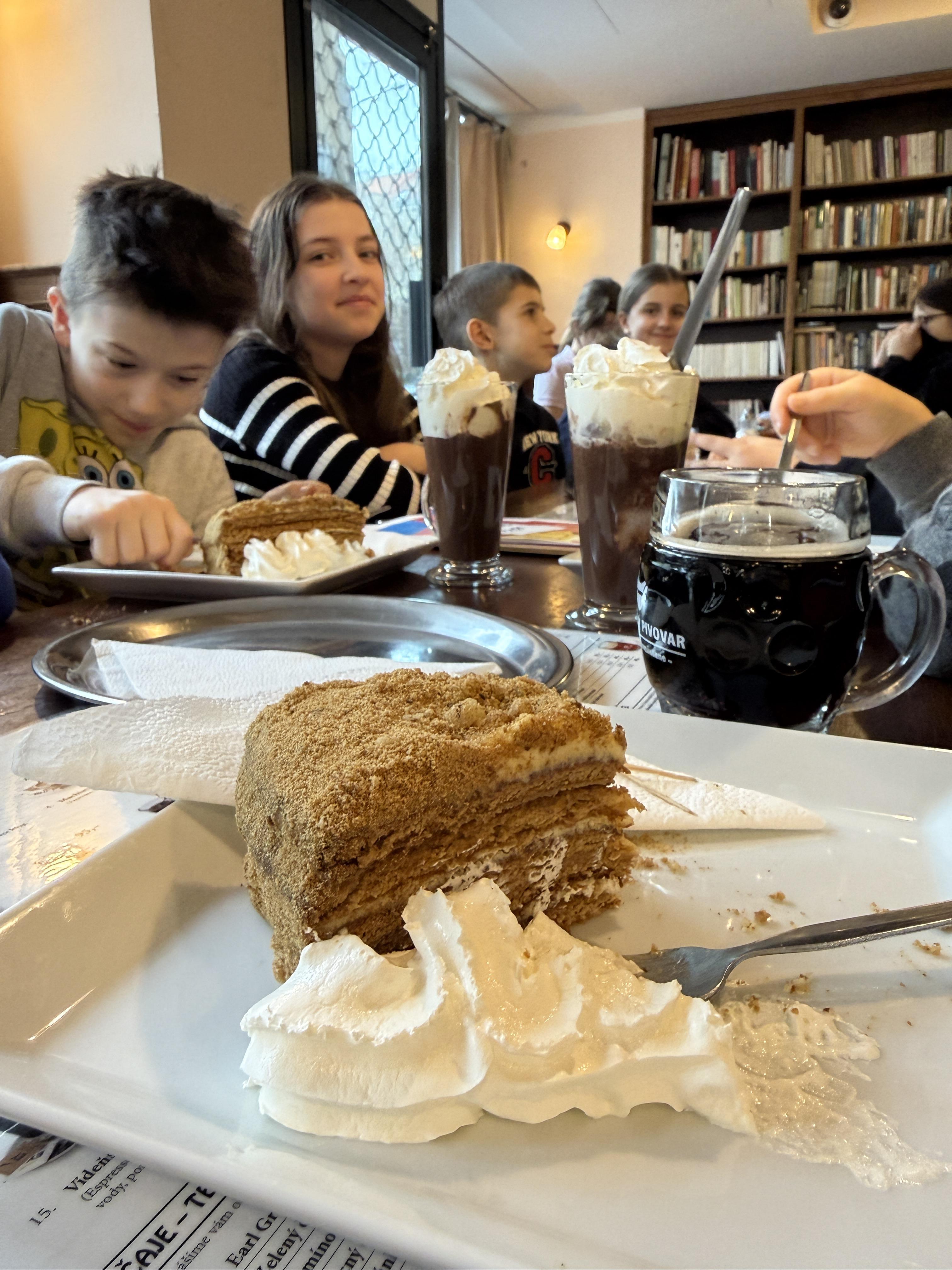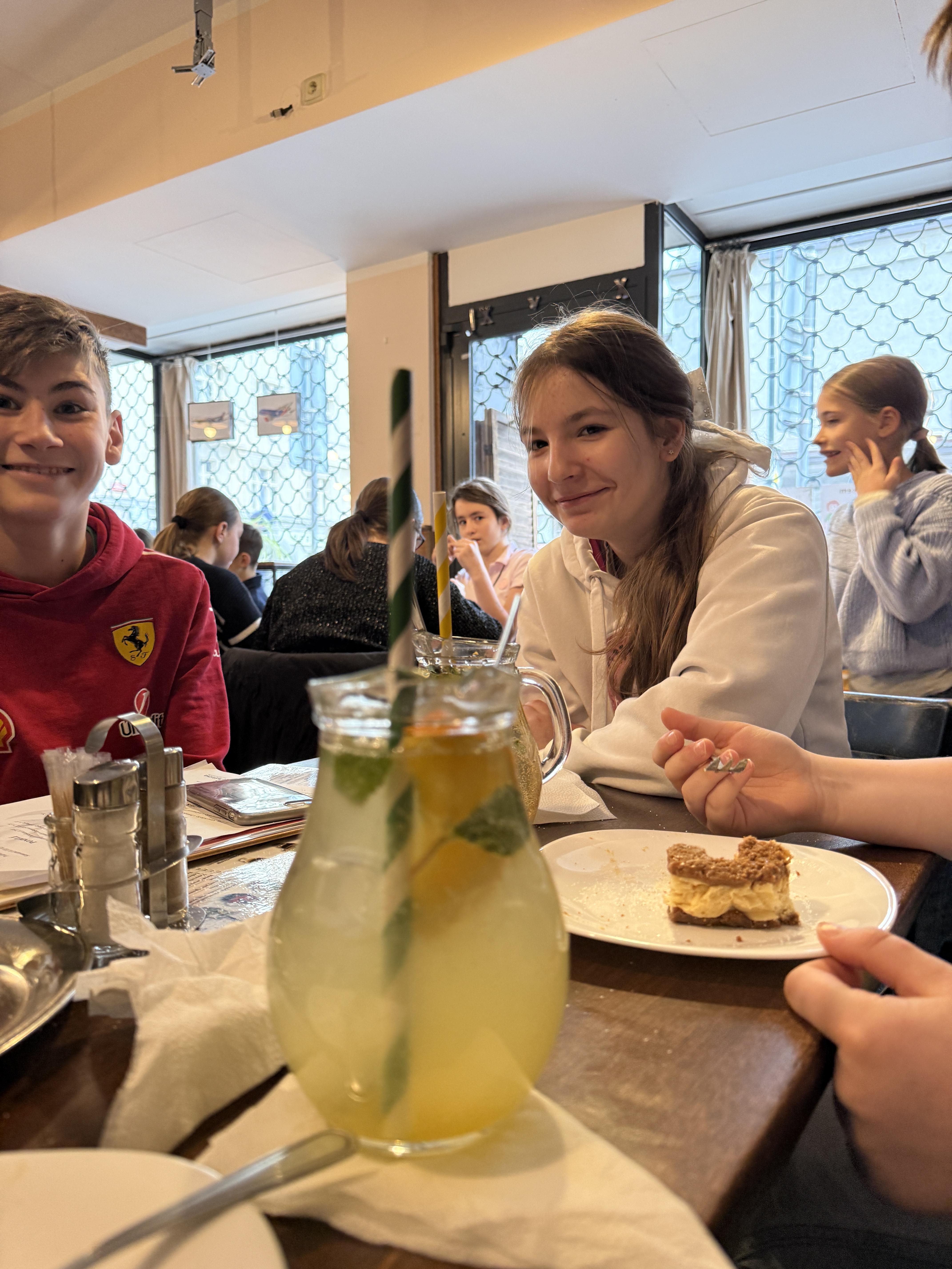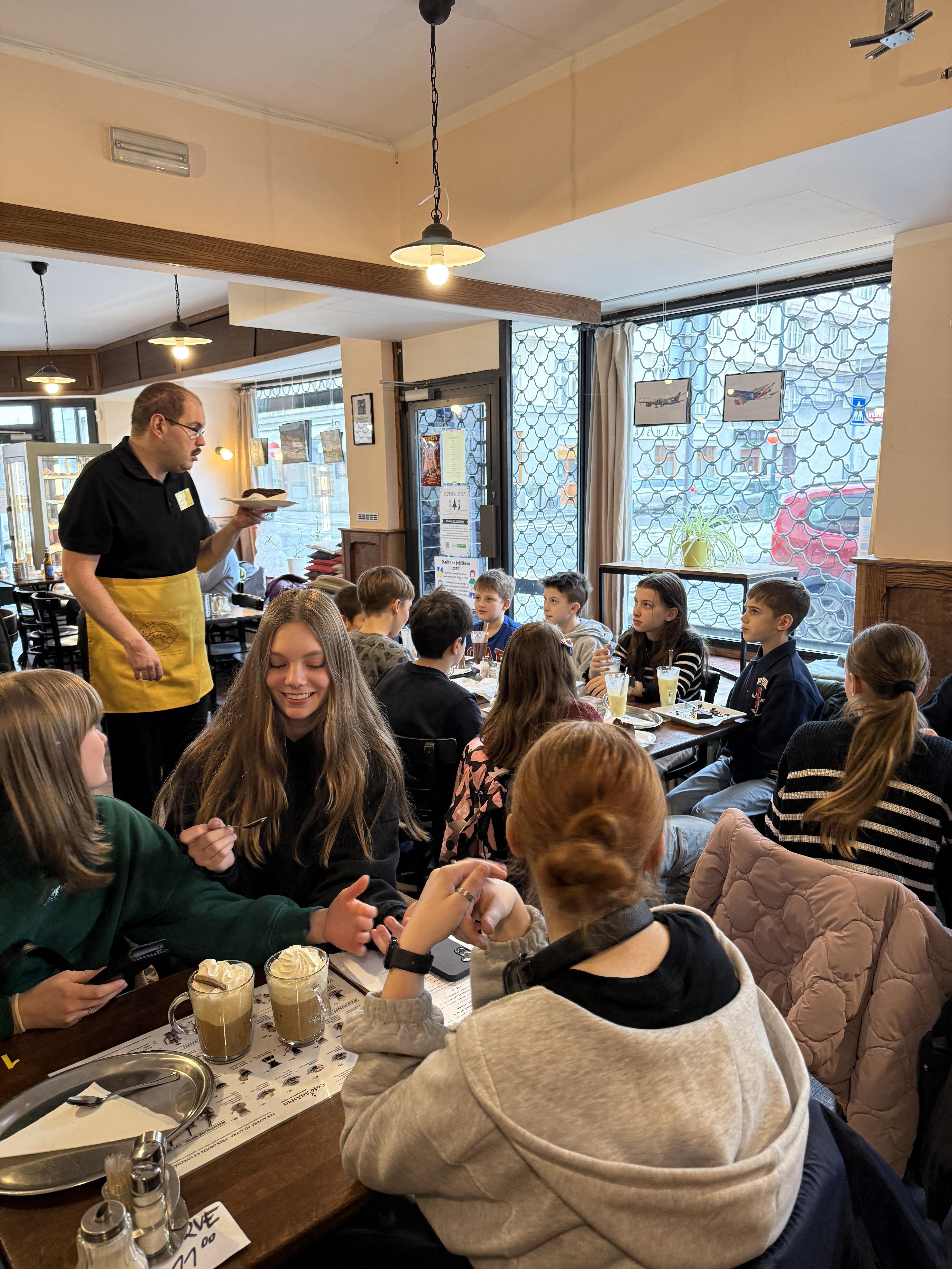 Někdy je potřeba pořádně se odměnit. Uplynulé pololetí bylo bohaté na aktivity, které školní parlament zorganizoval. Proto jsme se rozhodli spojit příjemné s užitečným a navštívili jsme kavárnu Café AdAstra, kde nám horkou čokoládu, maliny se šlehačkou, dorty, domácí limonády připravovali lidé s různým typem handicapu. Naší útratou jsme je tak podpořili. Tuto kavárnu na pravém břehu Vltavy vám rozhodně doporučujeme.