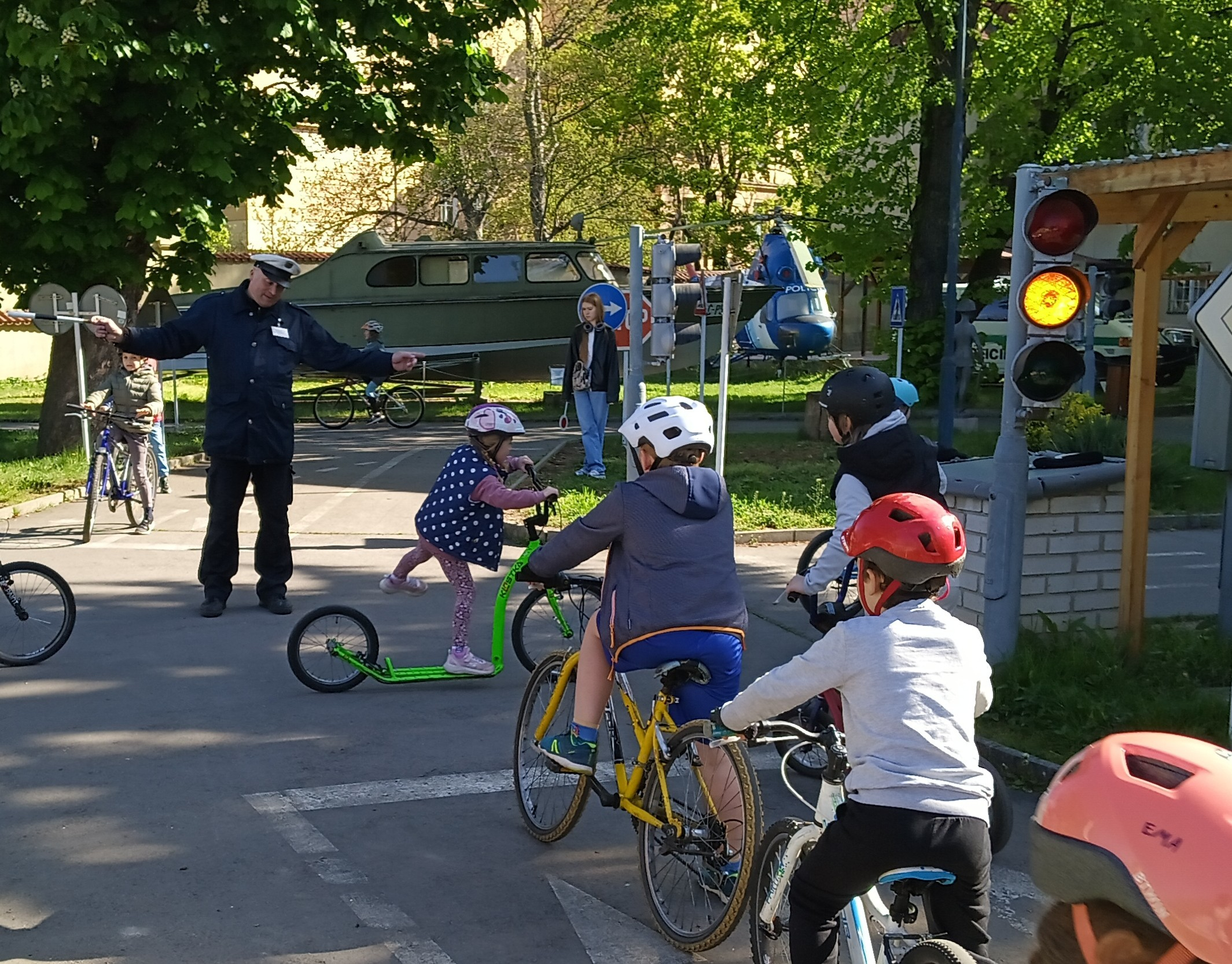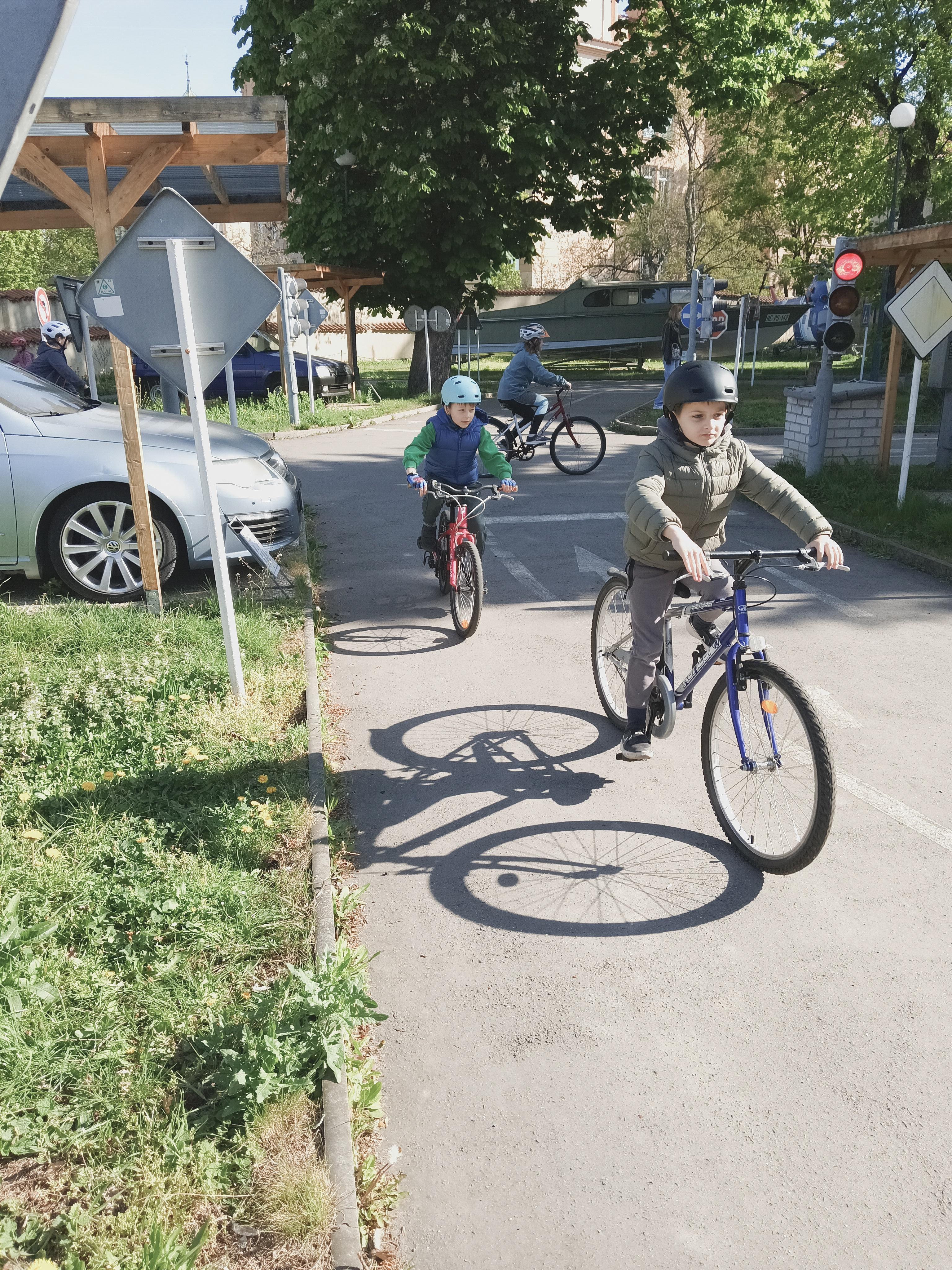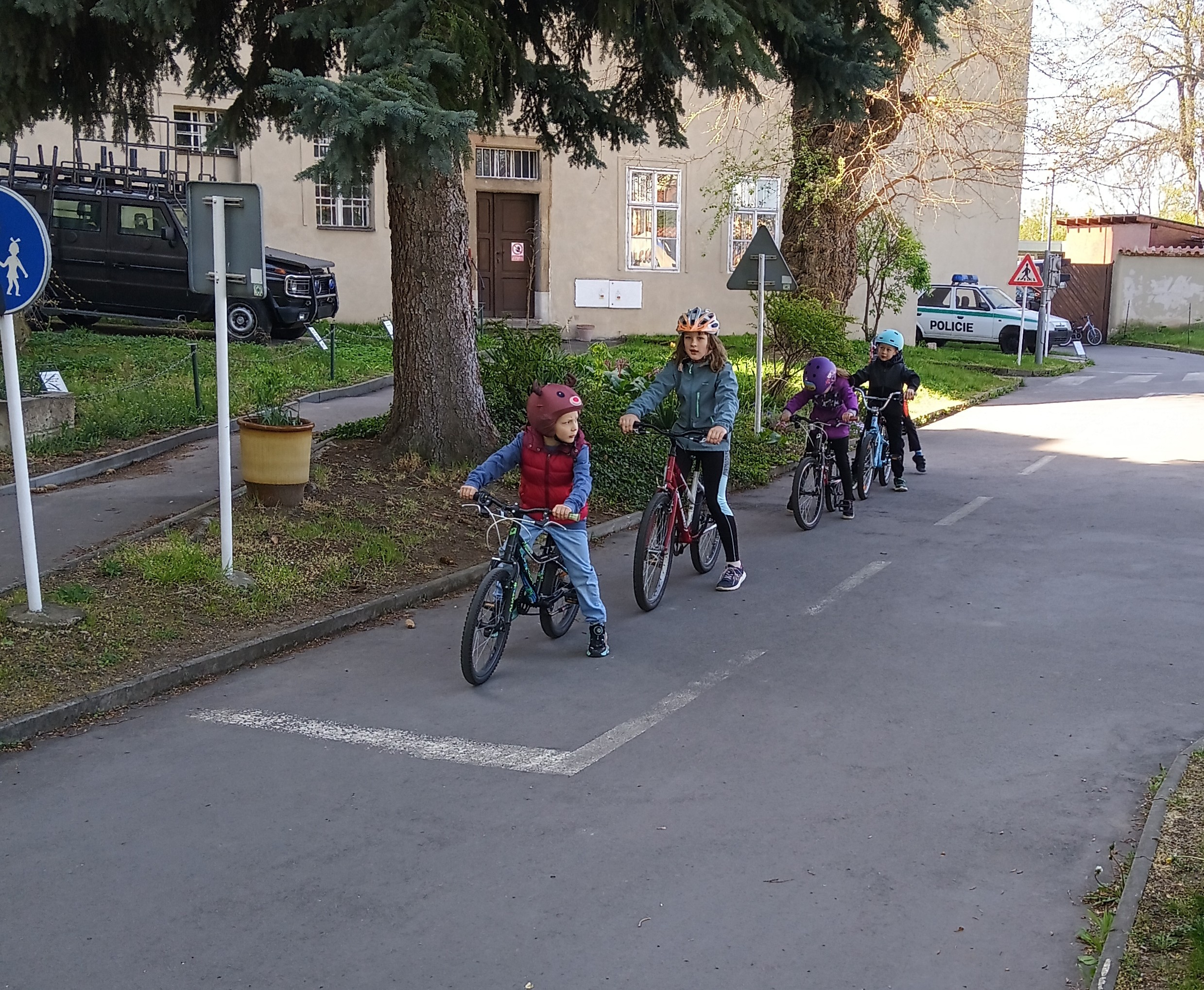 Vypravili jsme se na dopravní hřiště, kde nám pan policista půjčil kola a koloběžky. Nejprve jsme si všichni nasadili helmy a překontrolovali jsme si stav našeho vozidla. :) Celé hřiště bylo zmenšeným modelem našich silnic. Spoustu dopravních značek už známe, ale skloubit jízdu a soustředit se na značky už bylo opravdu těžké. Přesto jsme dostali velkou pochvalu a těšíme se na další návštěvu.