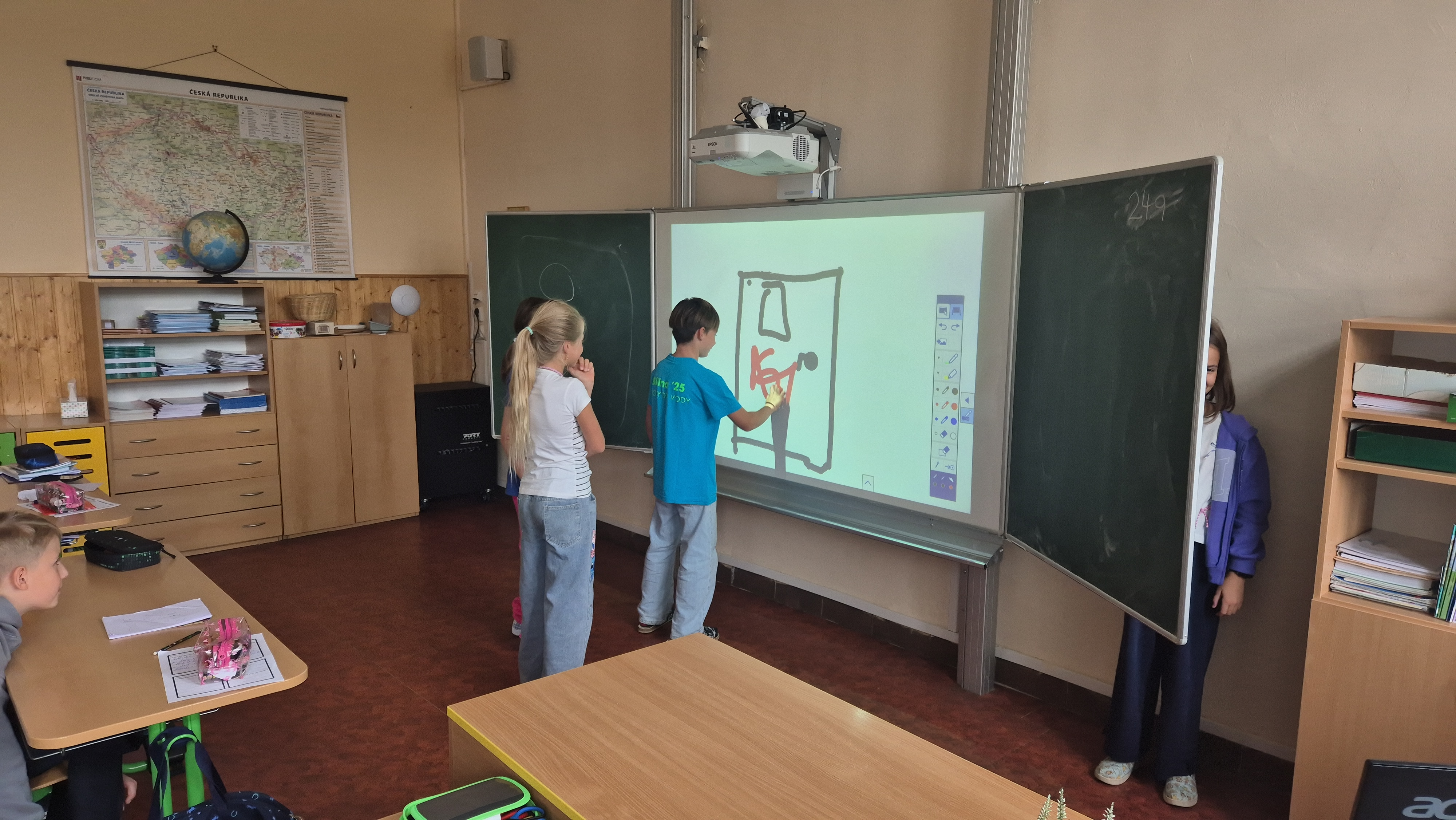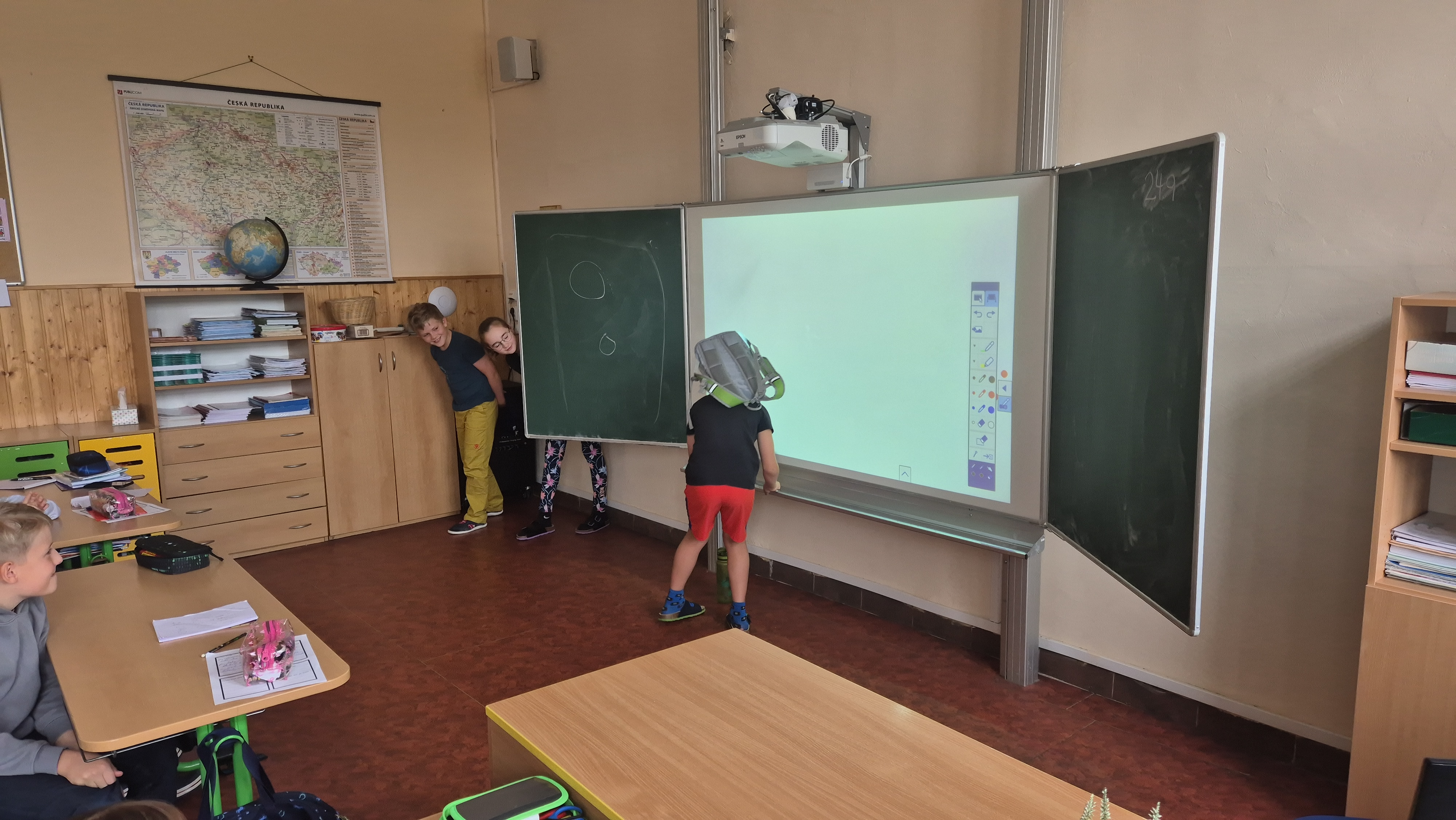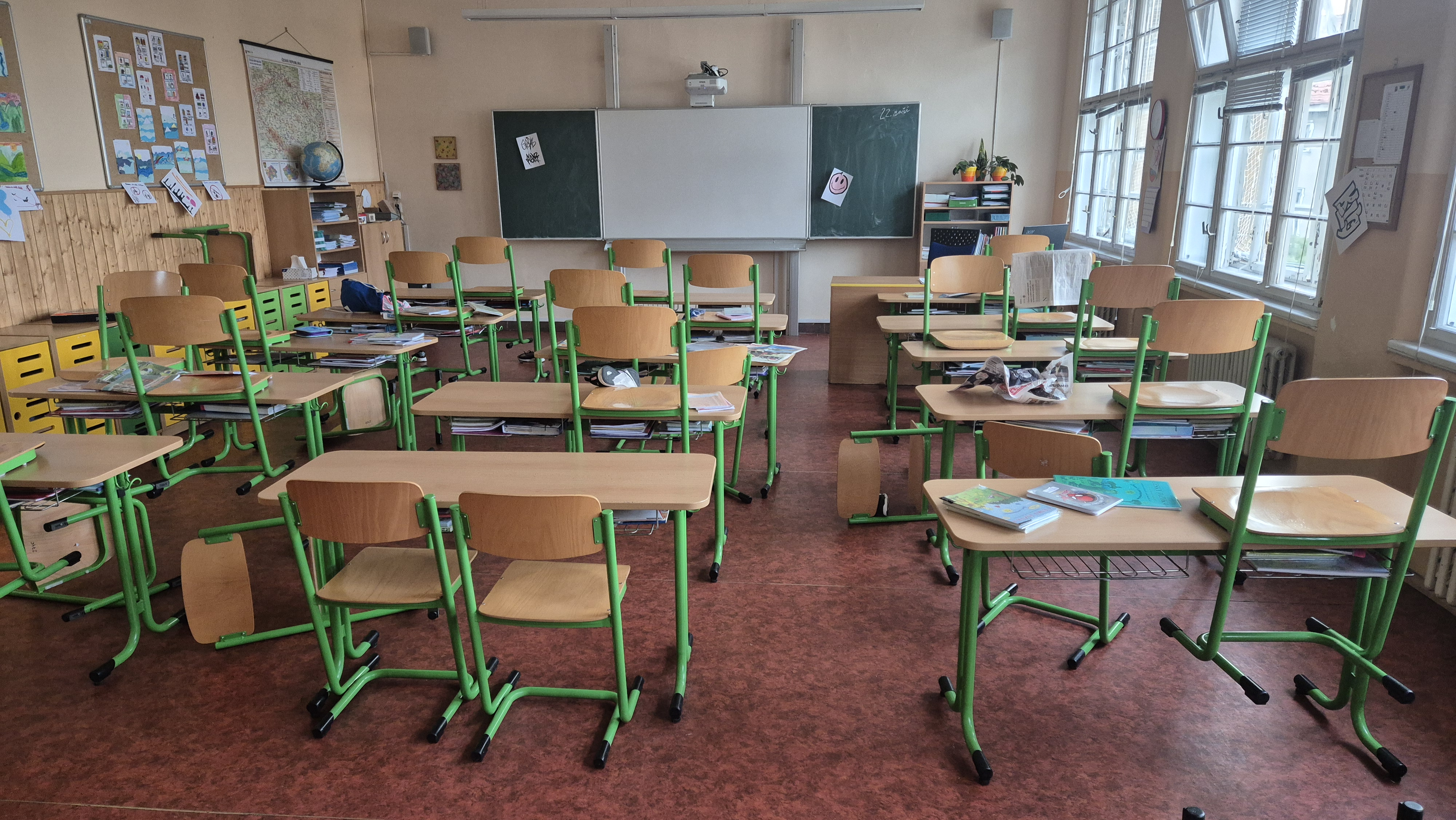 Ráno jsme vešli do třídy, ve které jsme se necítili vůbec dobře, a tak velmi brzy jsme si ji uklidili. Pracovali jsme s příběhem, vedli diskuzi a připravili ve skupinách scénky. Lehce jsme se dotkli i tvorby graffiti.