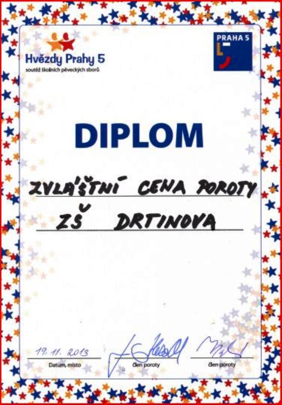 Náš pěvecký sbor se zúčastnil soutěže Hvězdy Prahy 5, kde získal velice kladné hodnocení poroty a při jejich vystoupení se bavila nejen porota, ale i celý sál. Získali jsme Zvláštní cenu poroty pro Davida Mašáta za sólový výstup v pohádce, ale i Zvláštní cenu poroty za choreografii programu a nejveselejší a nejvíce se pohybující děti.
