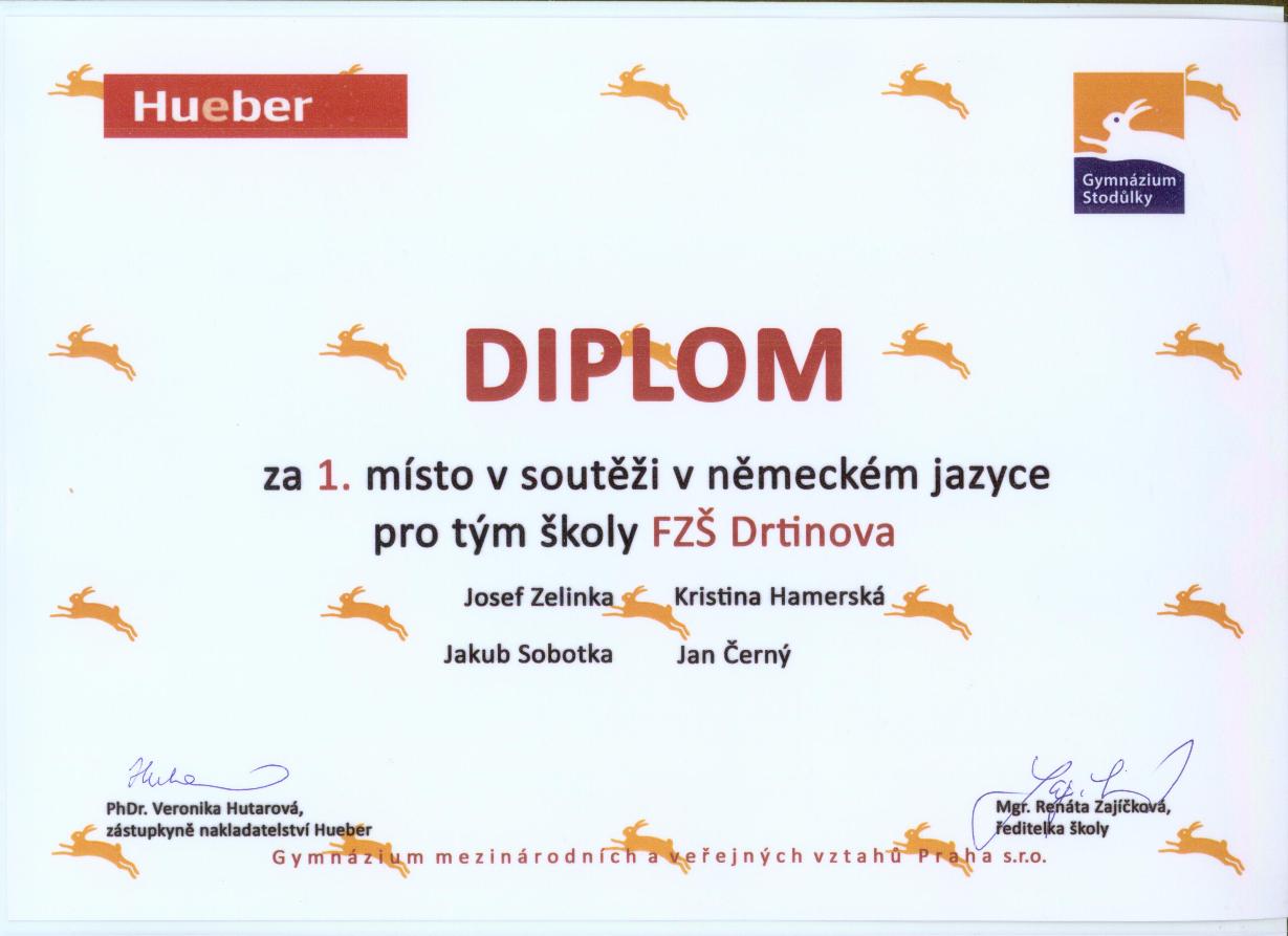 Ve čtvrtek 6. 12. 2012 zorganizovalo nakladatelství HUEBER Verlag a Gymnázium Mezinárodních a veřejných vztahů ve Stodůlkách celopražskou soutěž v německém jazyce „Deutsch macht mir Spass”.