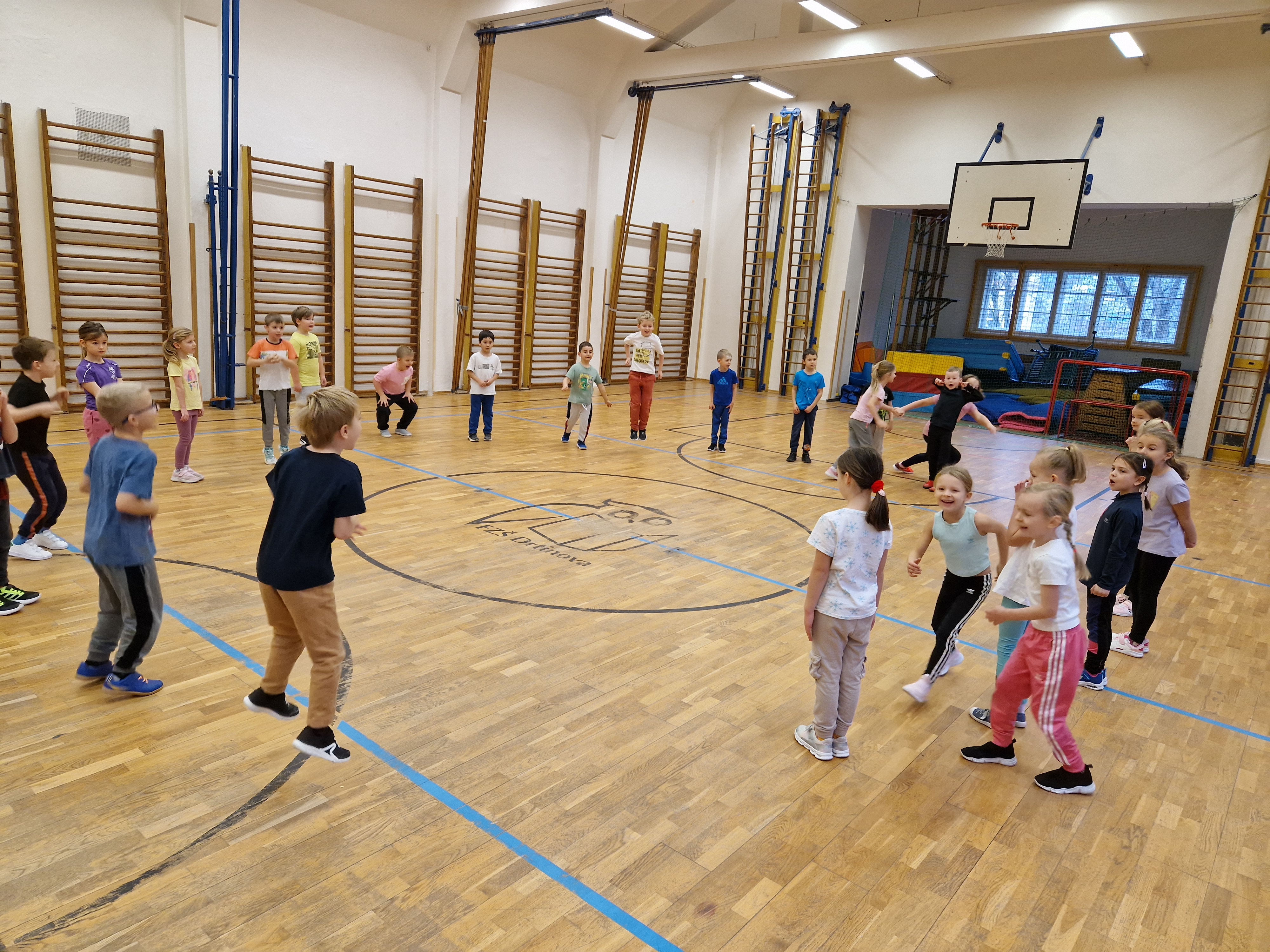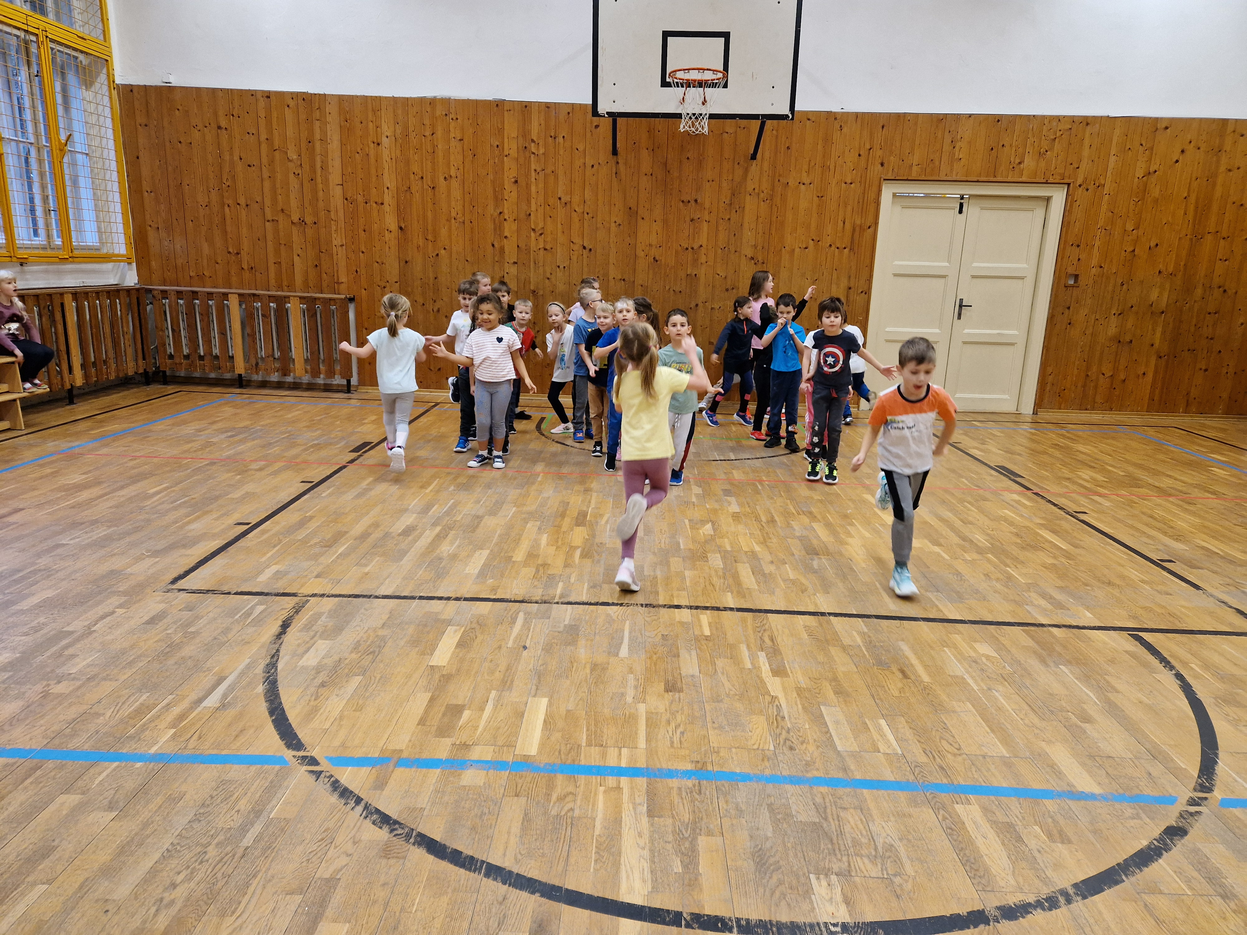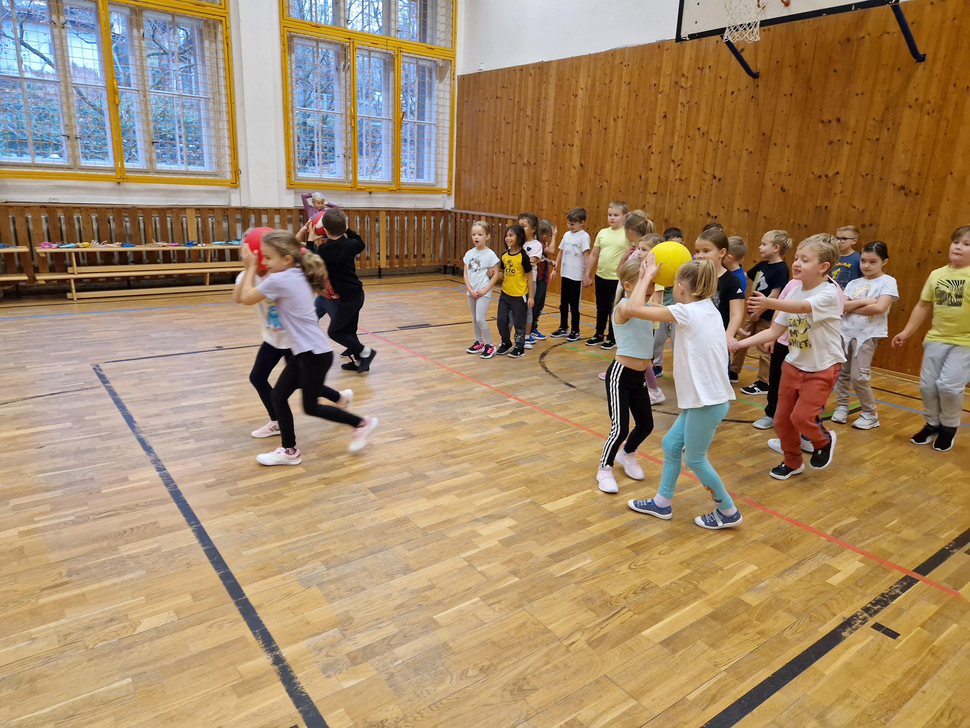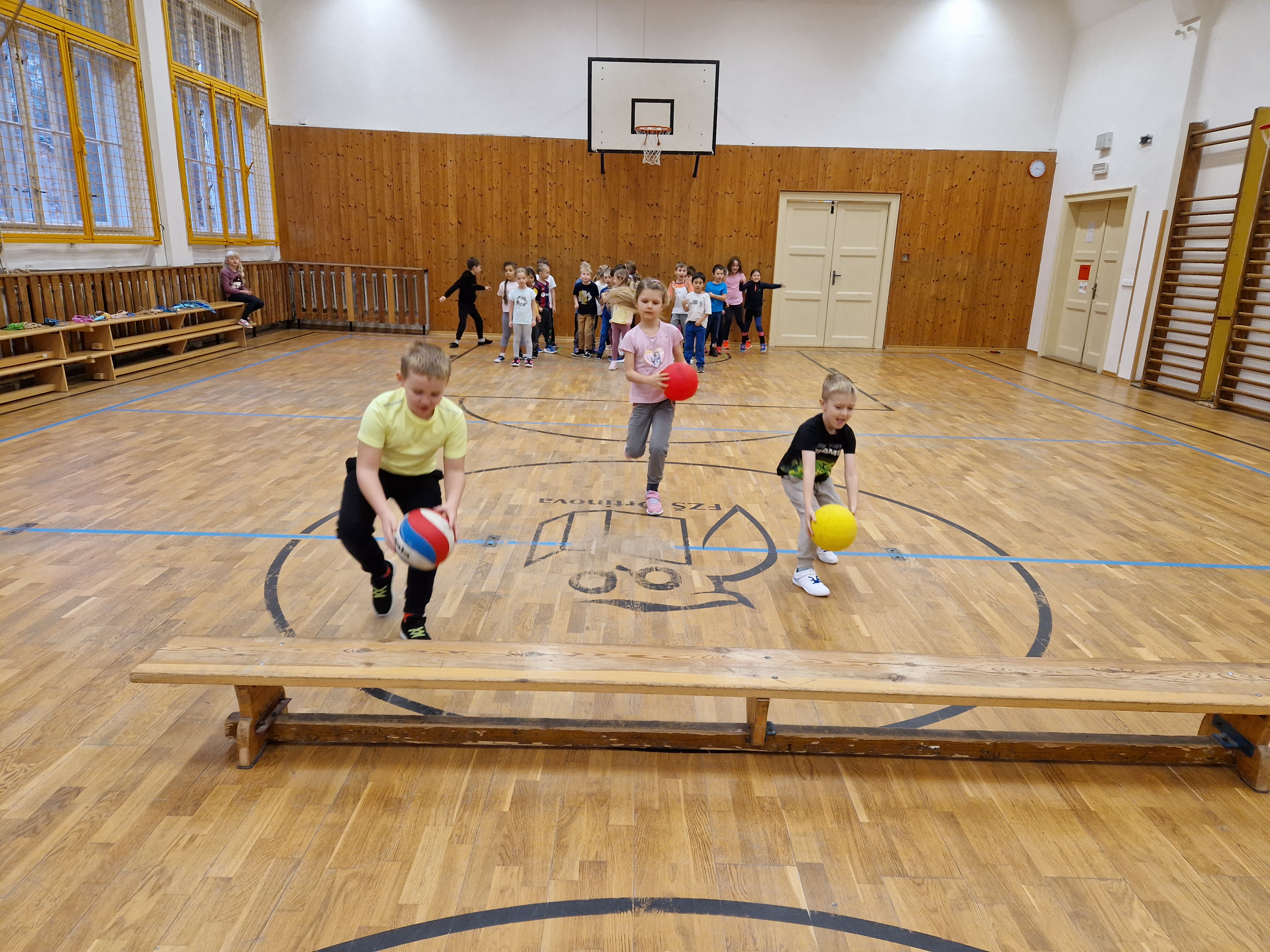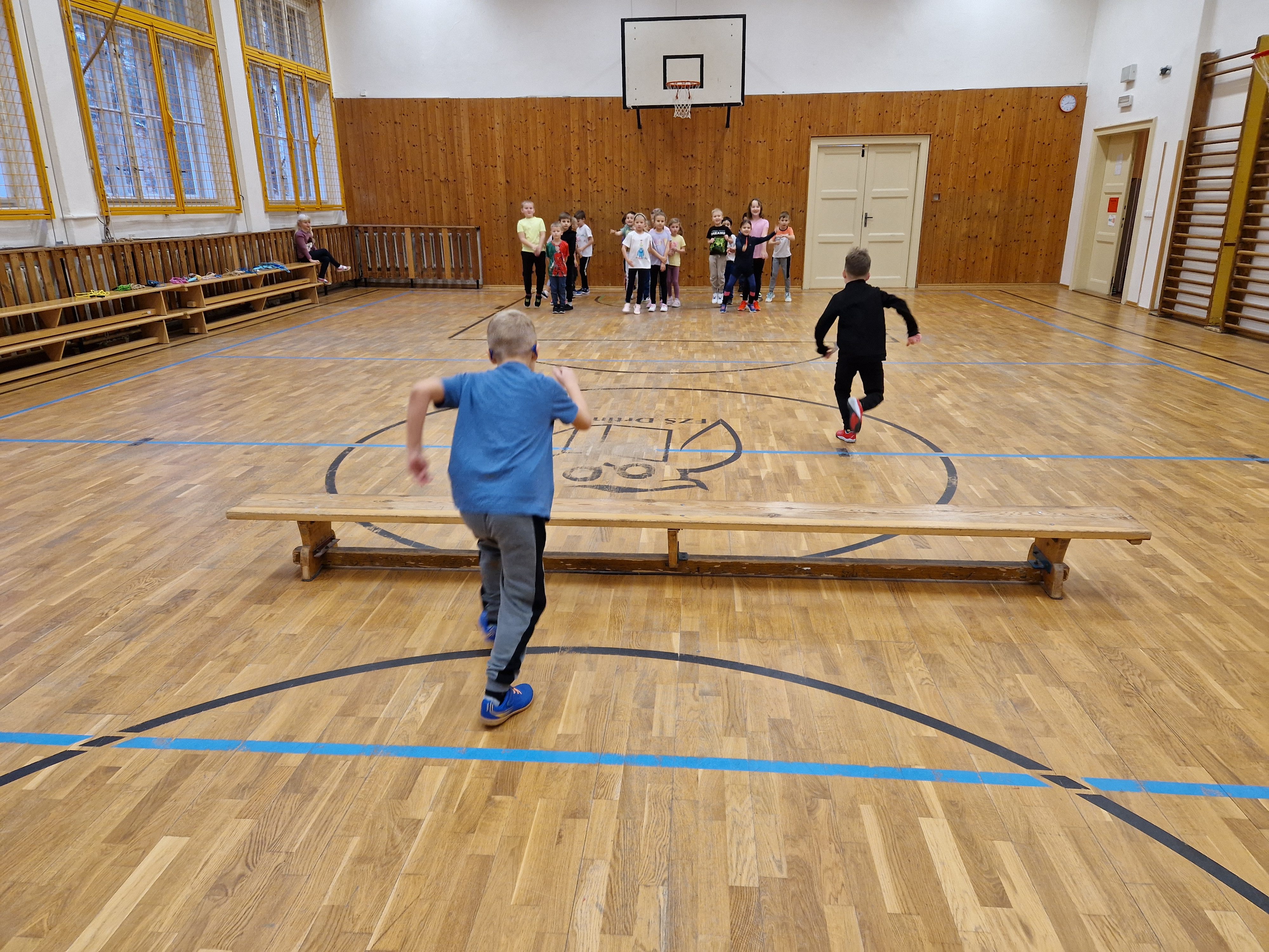 Při středeční hodině tělocviku jsme se sešli s kamarády z 1. A ke společnému cvičení. Byli jsme plní energie a těšili jsme se na program. Po krátké rozcvičce jsme se rozdělili do týmů. Při soutěživých hrách tělocvičnu naplnilo naše obrovské povzbuzování. Zaujala nás i lekce stolního tenisu. Přestože někteří z nás drželi pálku úplně poprvé, byla to zábava. Závěrečná „mezitřídní“ hra skončila nerozhodným výsledkem. Odcházeli jsme tedy lehce udýchaní, ale hodně spokojení.