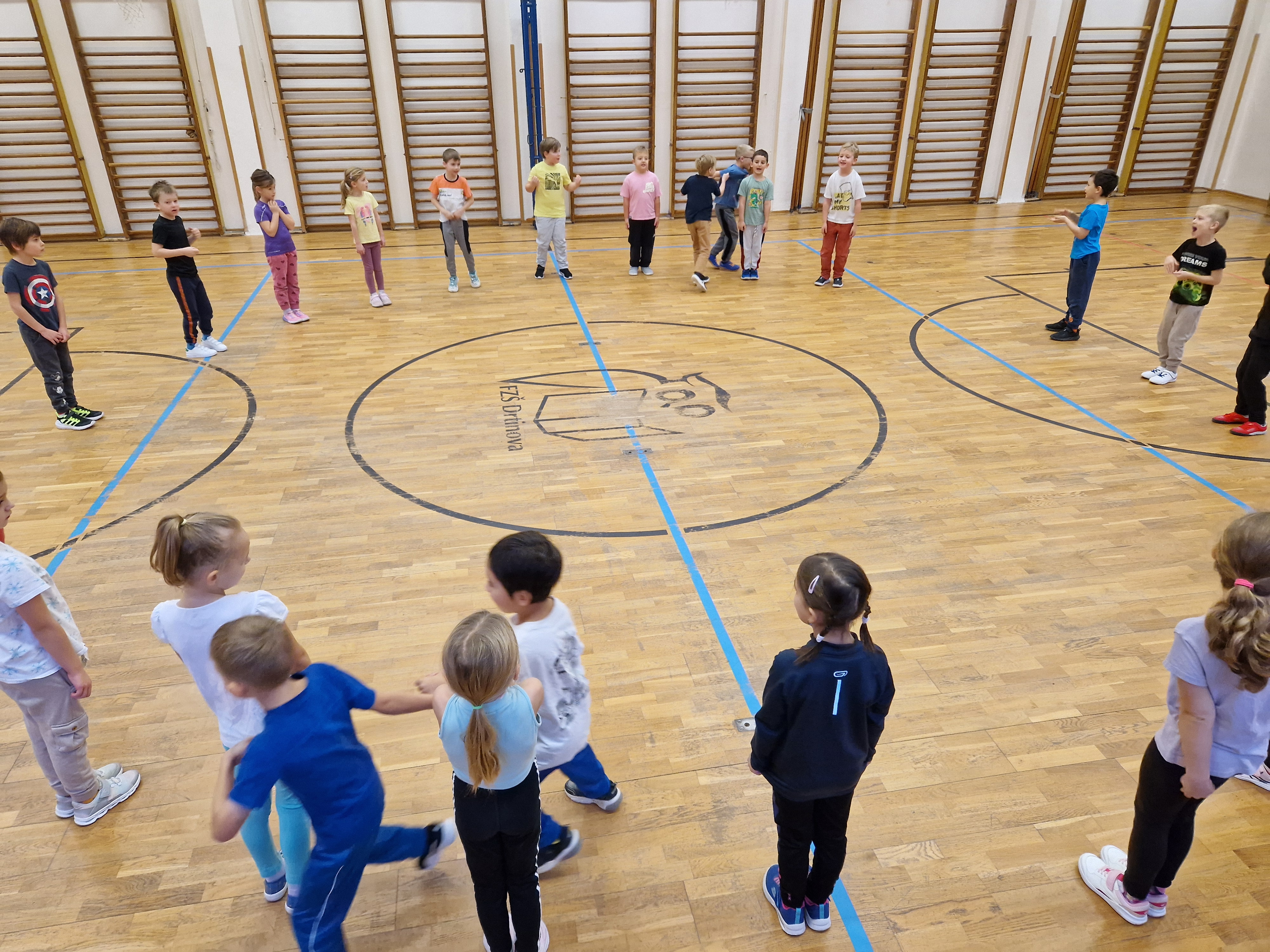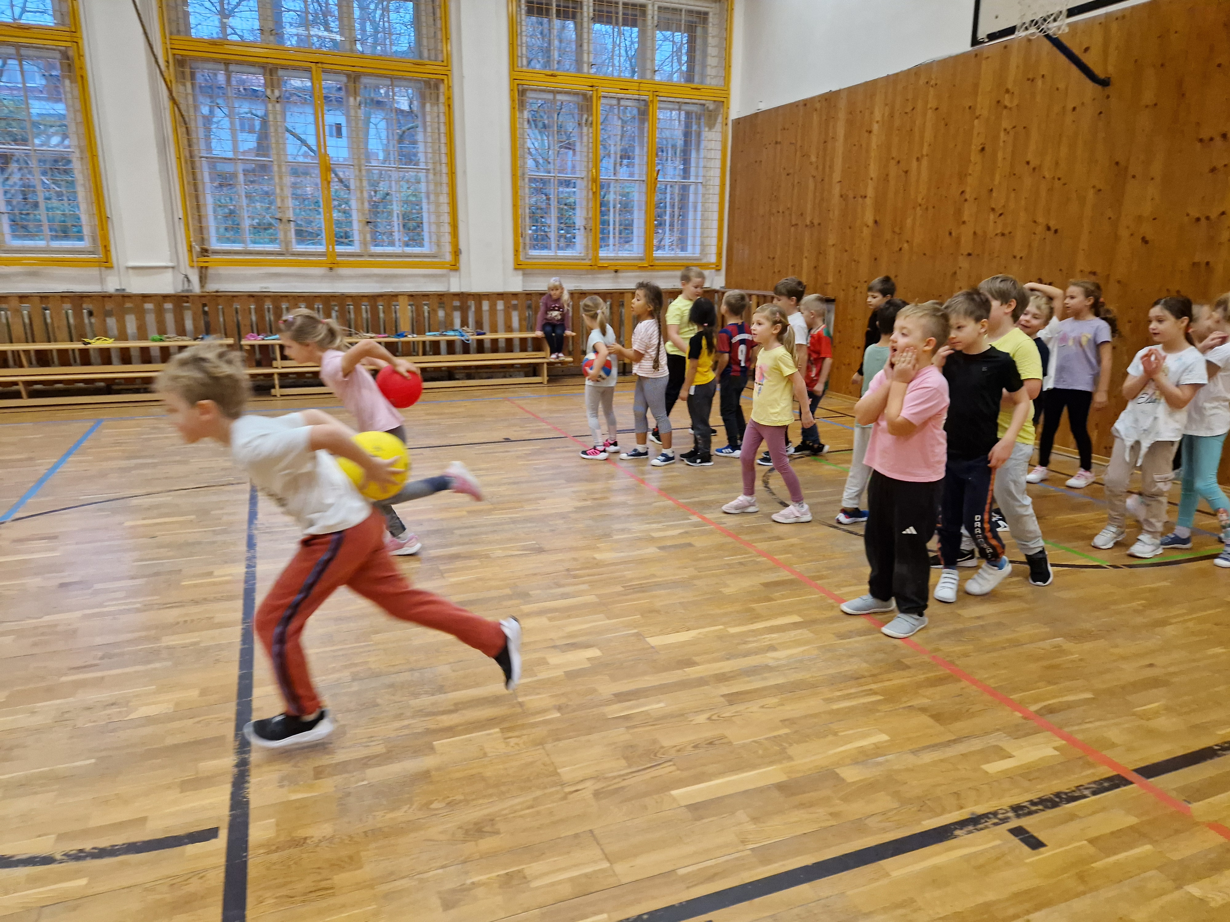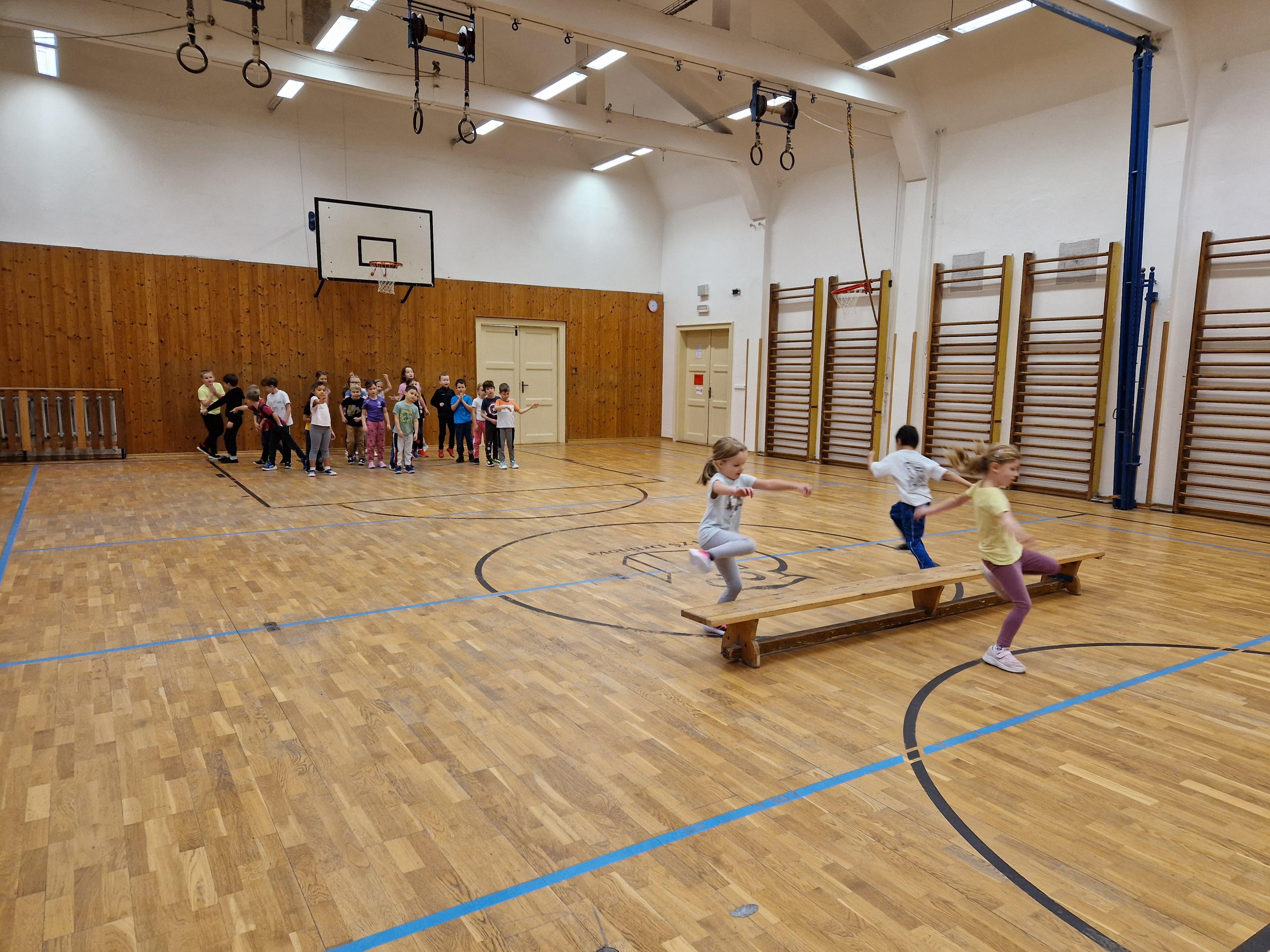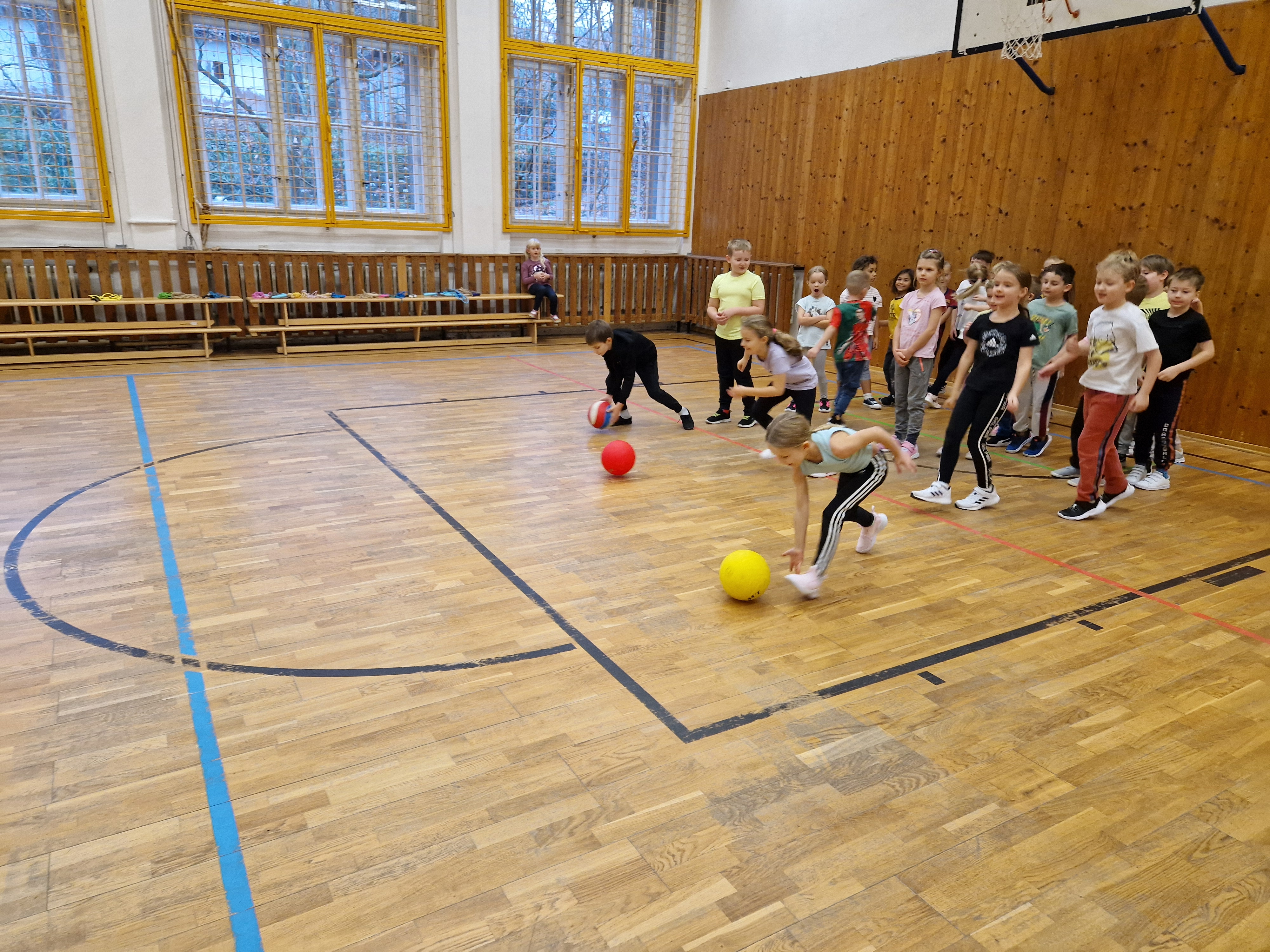 Při středeční hodině tělocviku jsme se sešli s kamarády z 1. A ke společnému cvičení. Byli jsme plní energie a těšili jsme se na program. Po krátké rozcvičce jsme se rozdělili do týmů. Při soutěživých hrách tělocvičnu naplnilo naše obrovské povzbuzování. Zaujala nás i lekce stolního tenisu. Přestože někteří z nás drželi pálku úplně poprvé, byla to zábava. Závěrečná „mezitřídní“ hra skončila nerozhodným výsledkem. Odcházeli jsme tedy lehce udýchaní, ale hodně spokojení.
