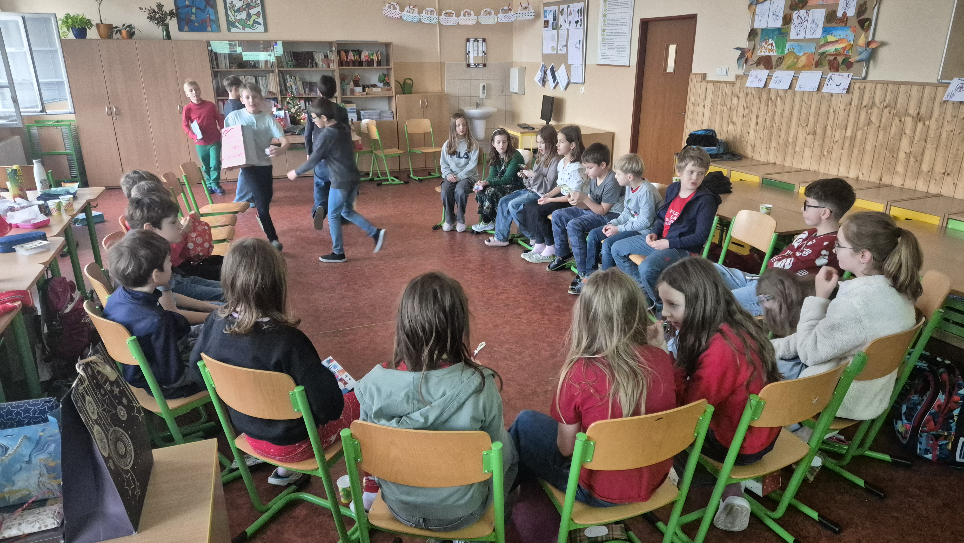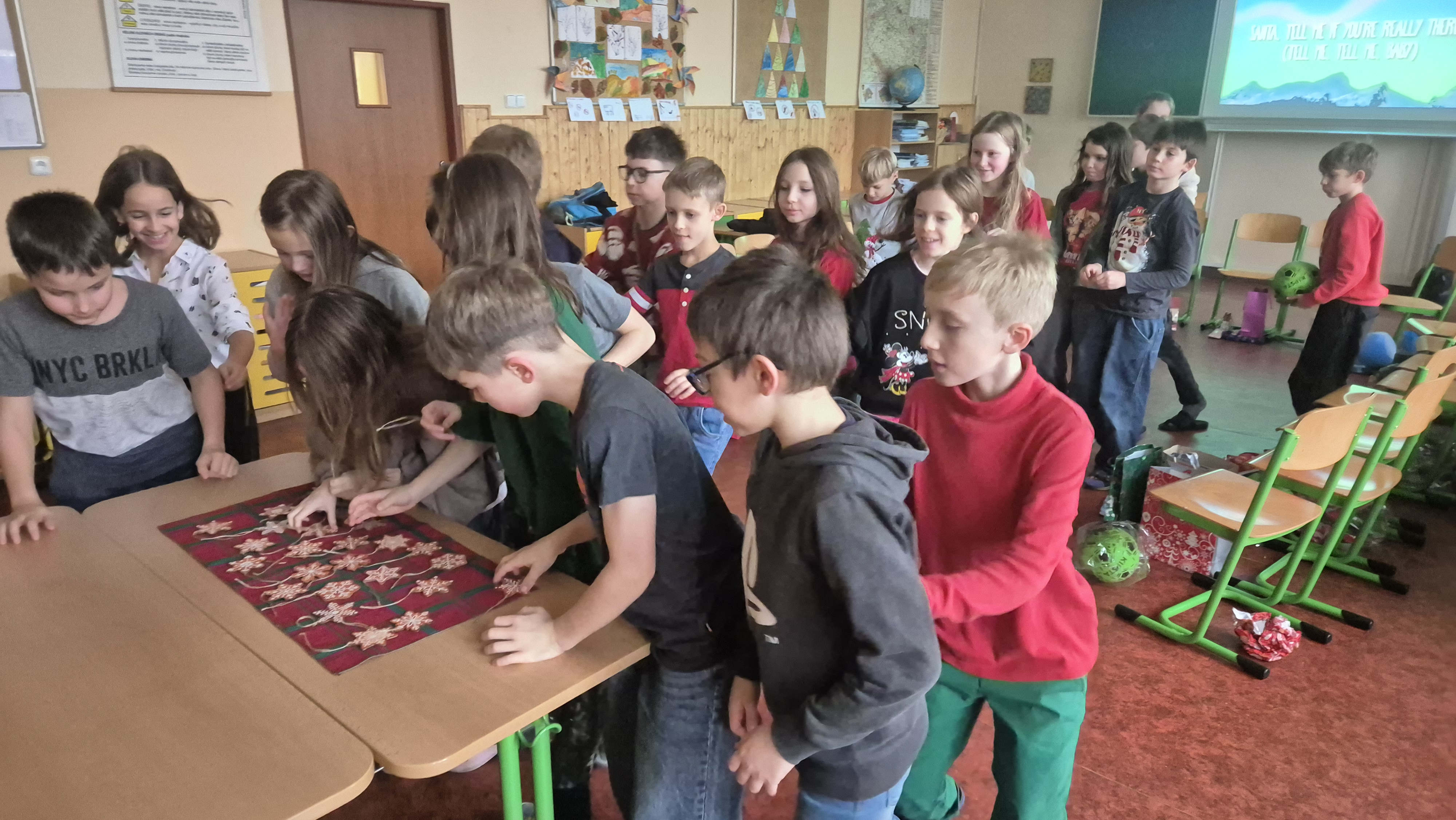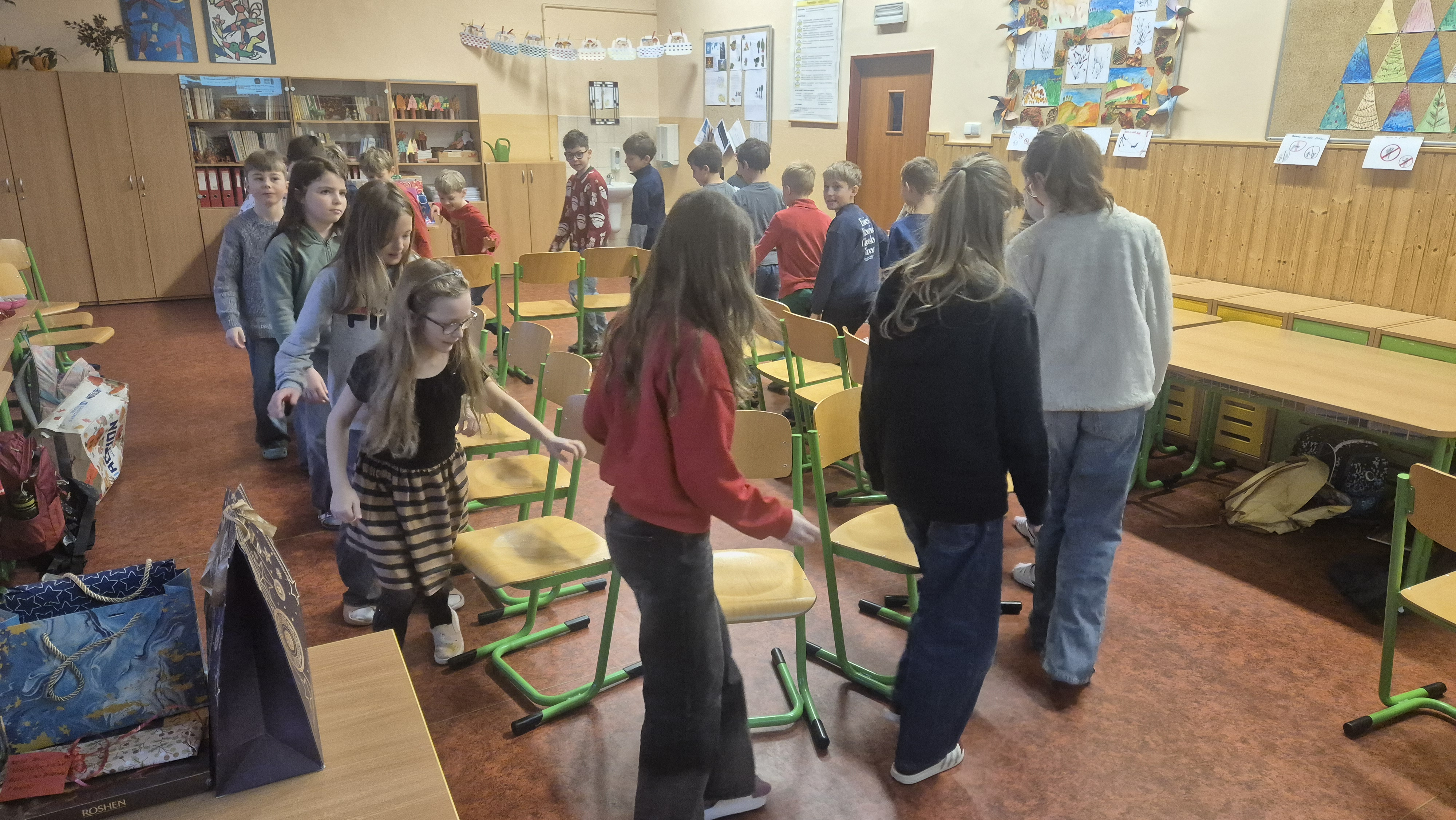 Vánoční besídka ve třídě 4. A Poslední den před vánočními prázdninami jsme si zpestřili společnými hrami, tancem a předáváním dárků. Vánoční besídka 4. A