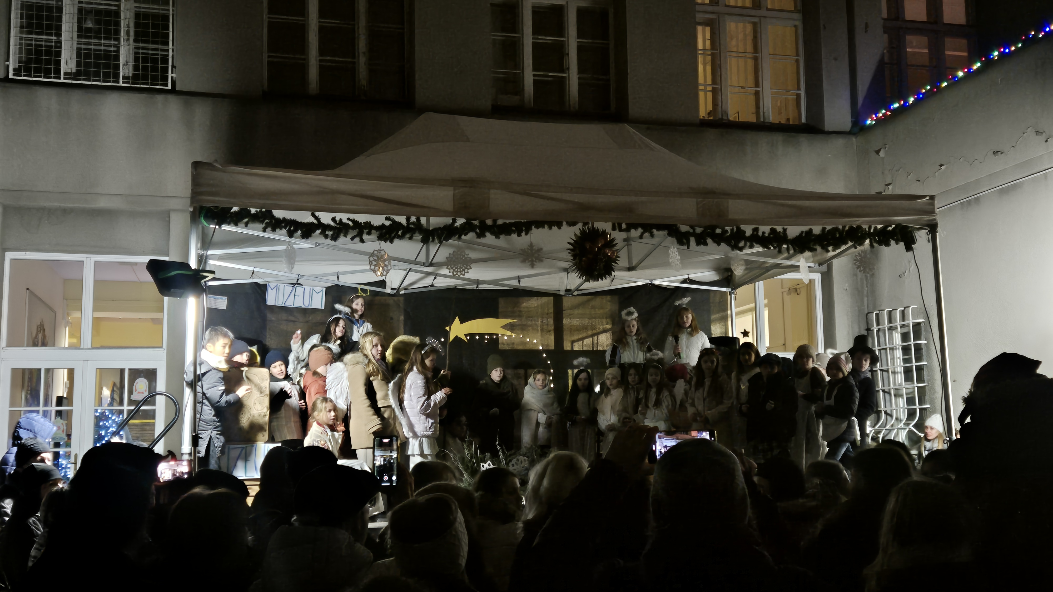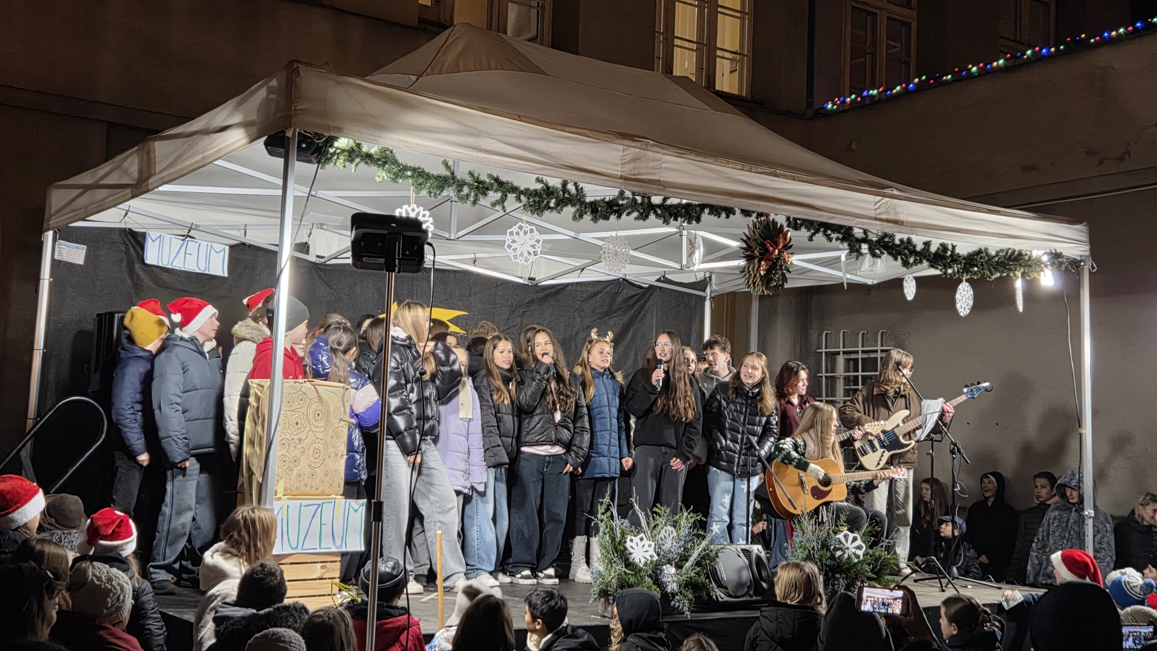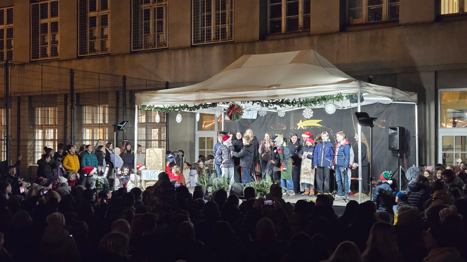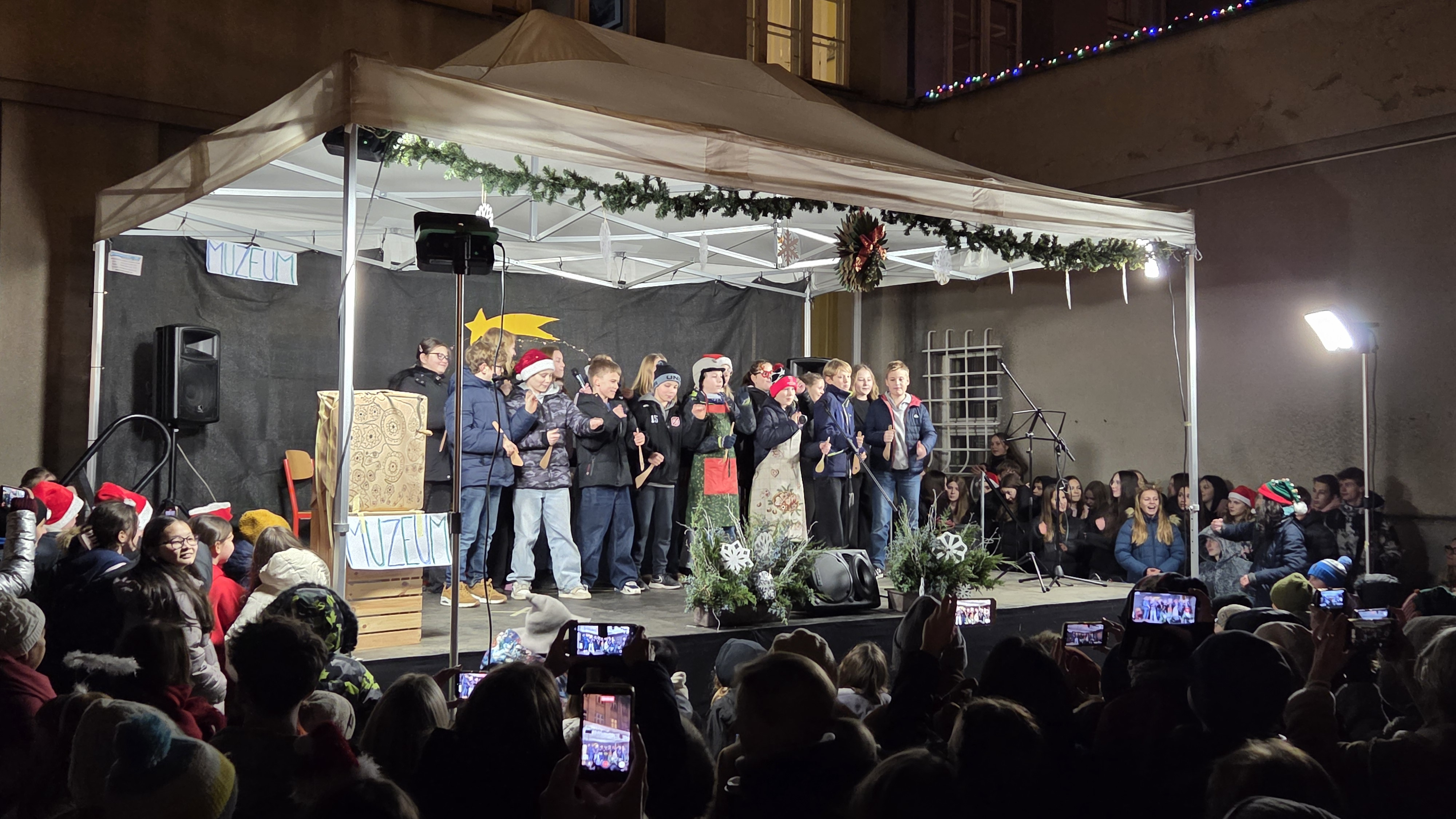 Vánoční vystoupení proběhlo na pódiu a neslo se v duchu vánočních písní českých i zahraničních. Na závěr si diváci připomněli příběh narození Ježíška díky skvěle zpracovanému „mechanickému“ betlému a symbolu světla v podání žáků 1. stupně.