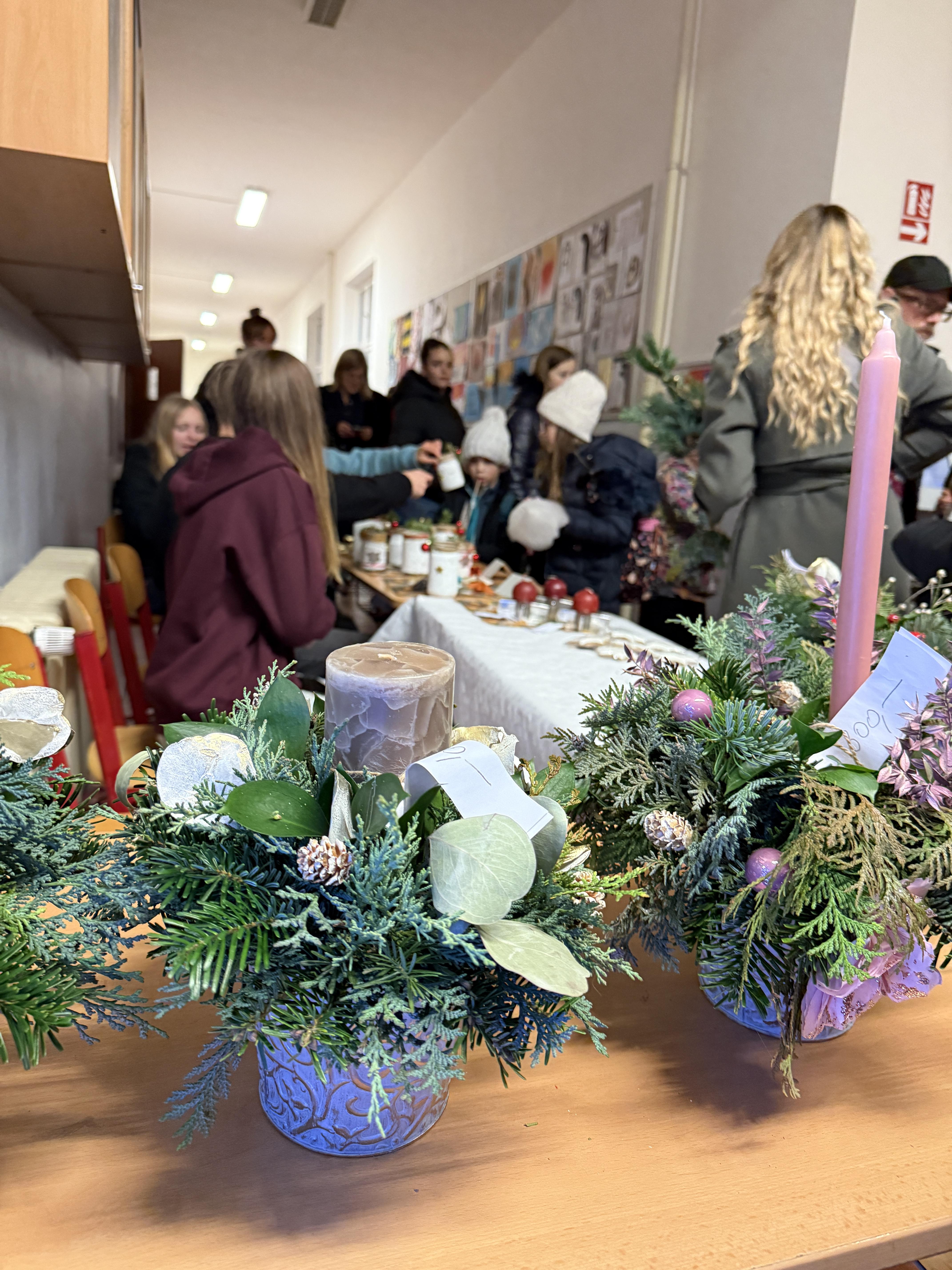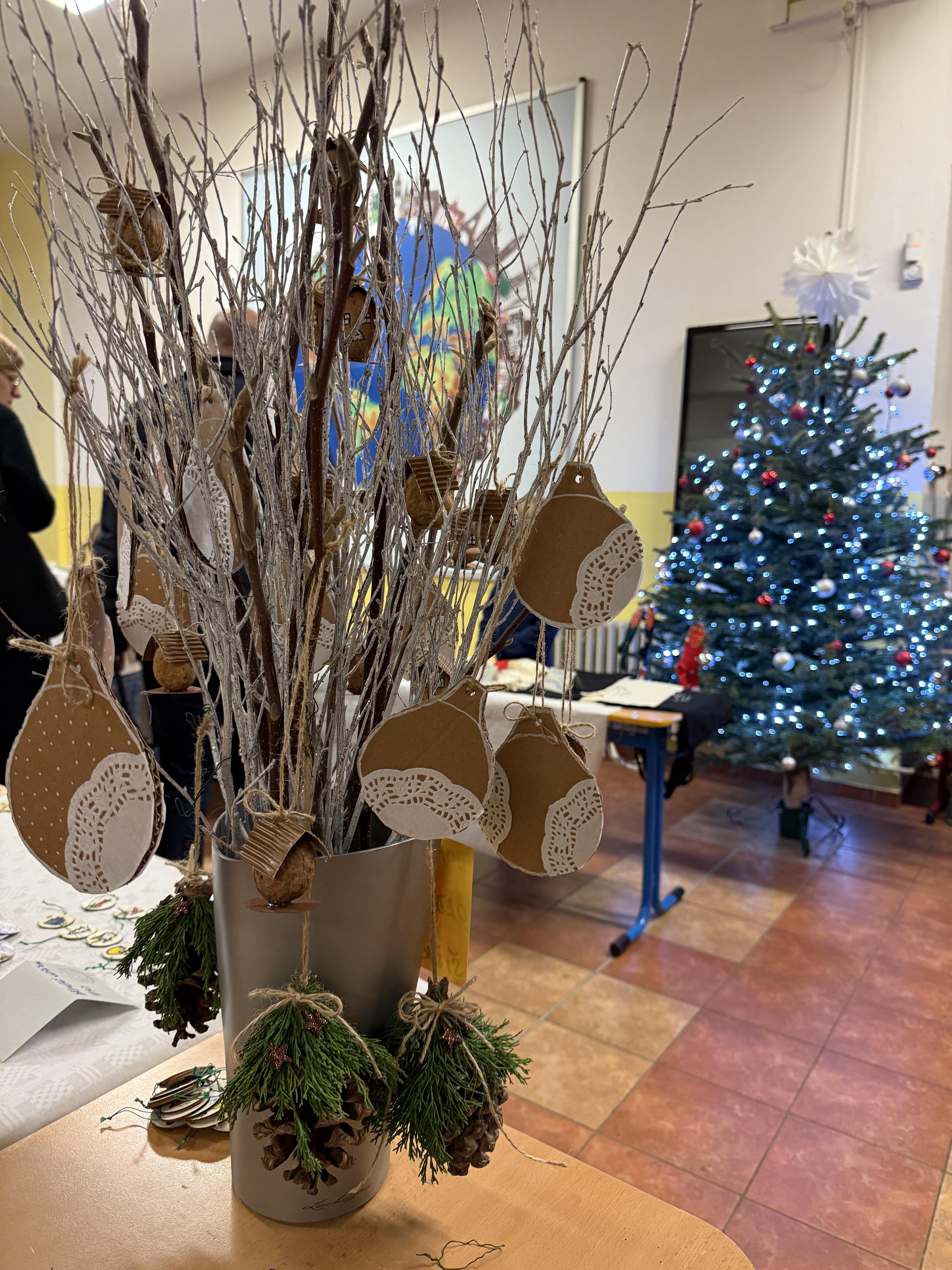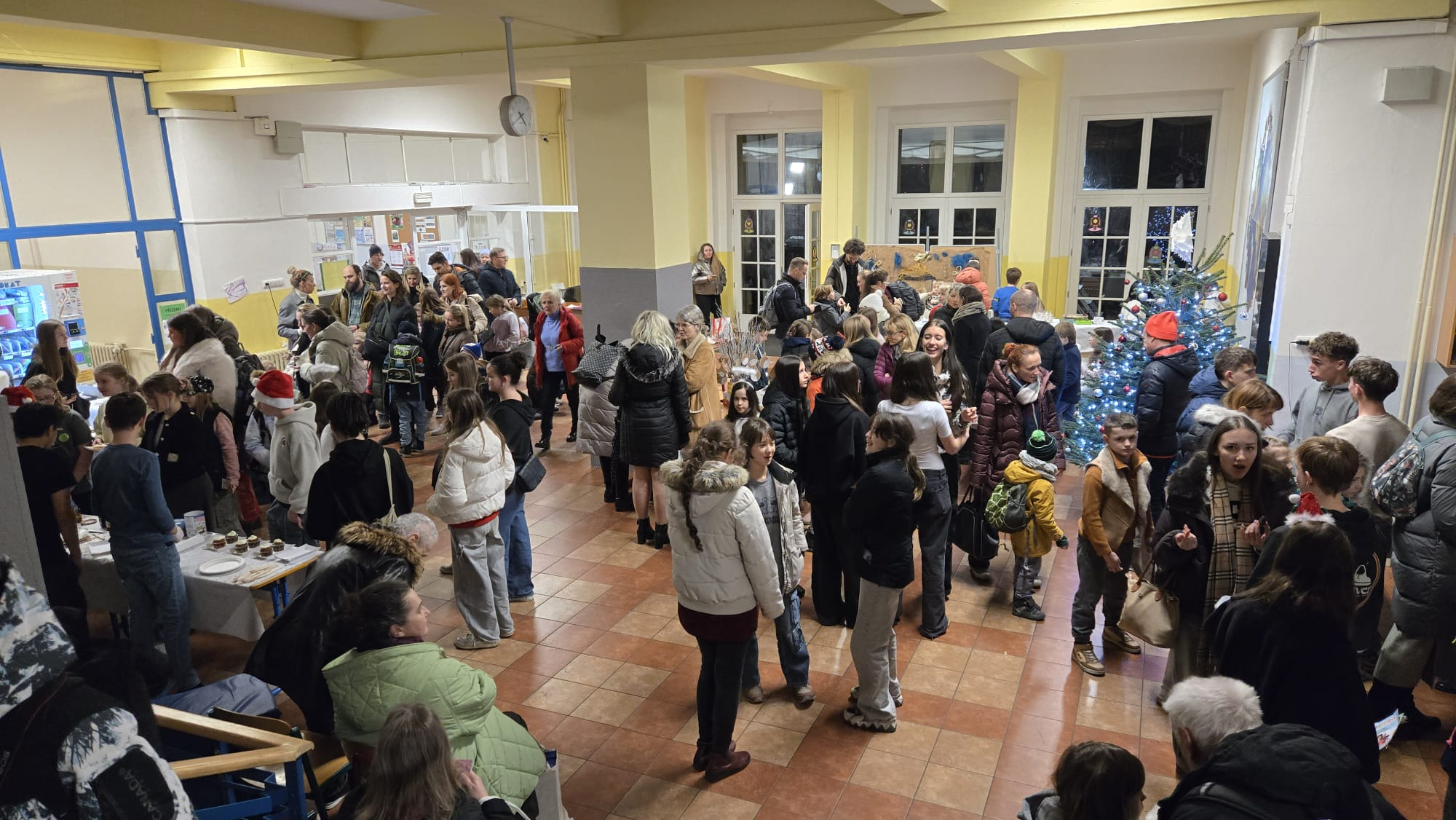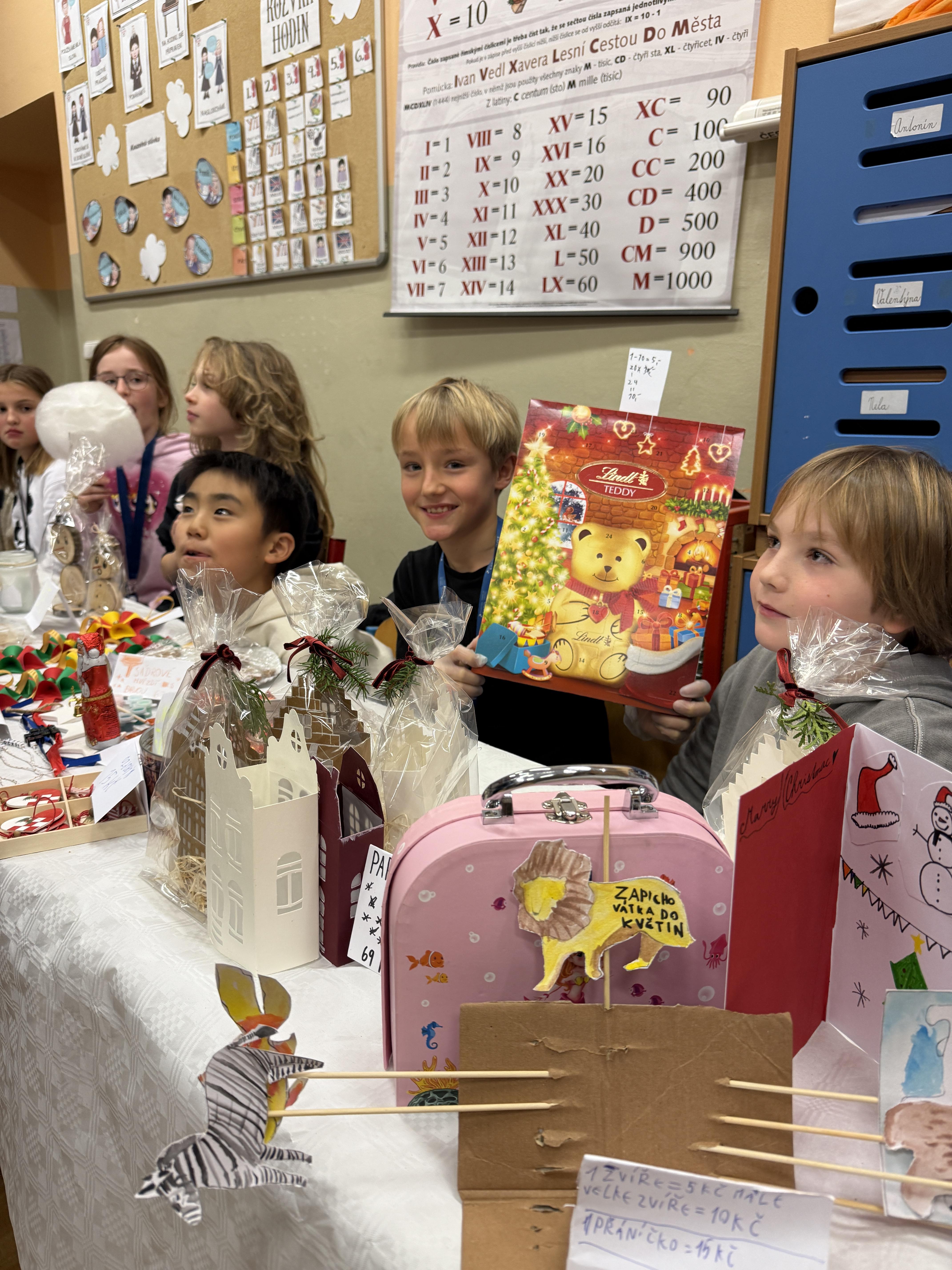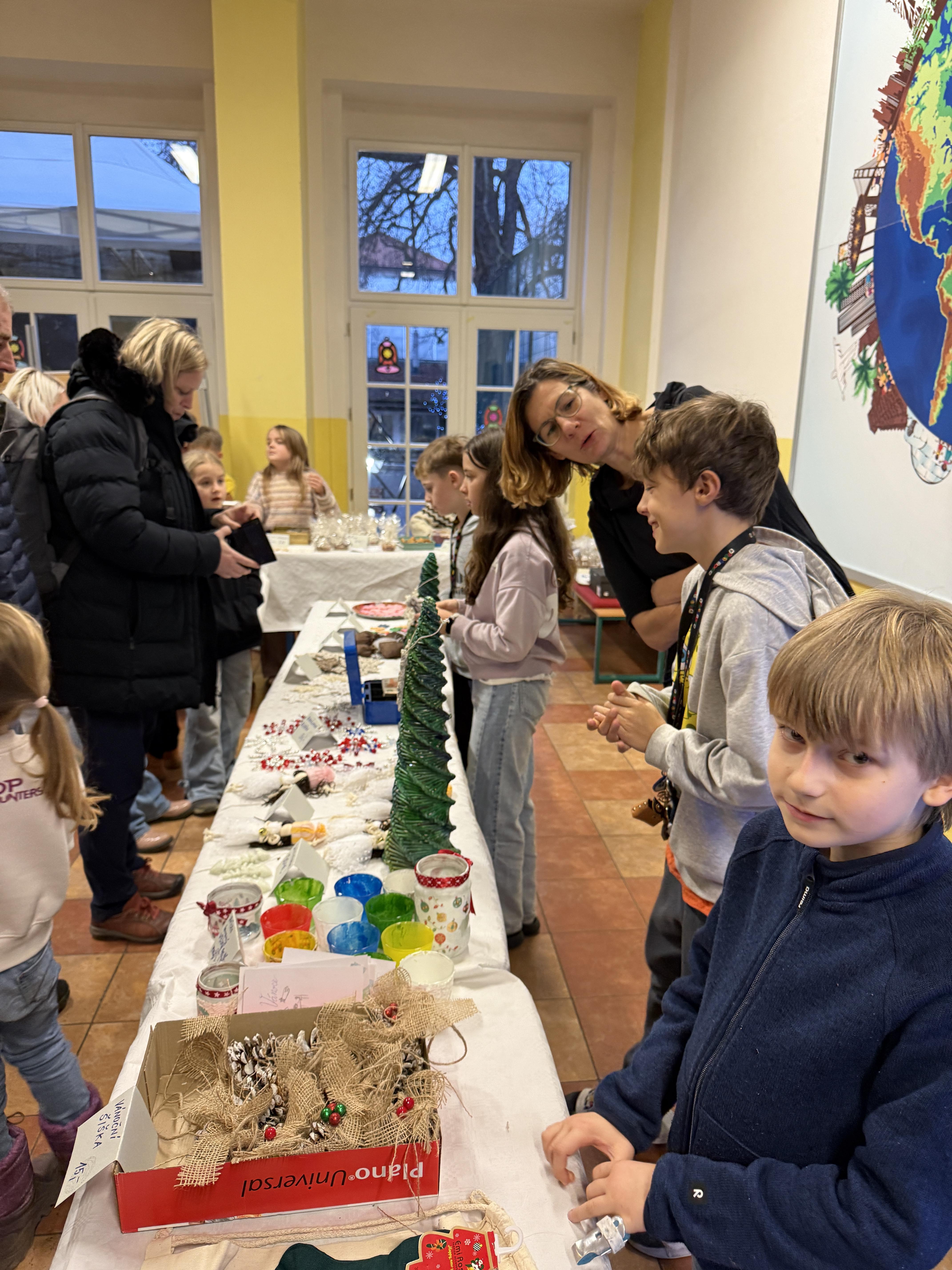 V úterý 16. 12. se ve škole uskutečnil vánoční jarmark a hudební vystoupení. Akce měla velký úspěch a díky velké návštěvnosti a schopným prodejcům se utržilo více jak 45.000,- Kč, tím jsme překonali rekord z minulého roku. Ochutnat jste mohli cukroví nejrůznějších tvarů a chutí, palačinky, toasty, cukrovou vatu, na kterou se stála dlouhá fronta. K prodeji byly vánoční ozdoby a jiné dárky, které vyráběli sami žáci, rodiče, učitelé i senioři z Domu seniorů Michle, se kterými jsme v prosinci zahájili spolupráci. V kavárně jste si mohli odpočinout od vánočního shonu - v nabídce byla výborná káva, kakao a čaj a dva druhy moučníku, který upekly paní kuchařky. Novinkou letošního roku byl facepainting.