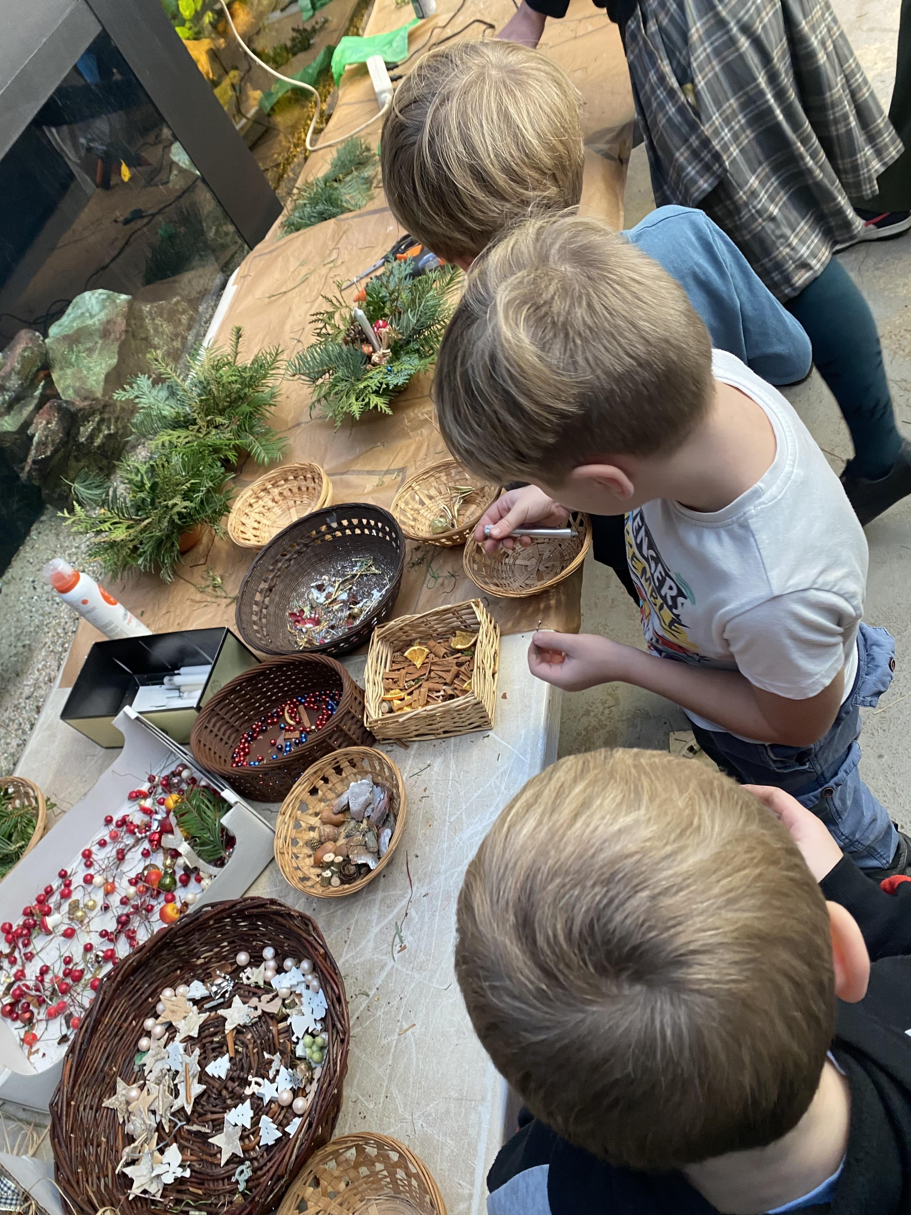 Vánoční svícen V nedaleké Stanici přírodovědců jsme si vlastnoručně vyrobili vánoční svícny. Povedly se a doma ozdobí sváteční stoly. Přitom jsme si mohli prohlédnout zvířata chovaná v teráriích a akváriích. Vánoční svícen