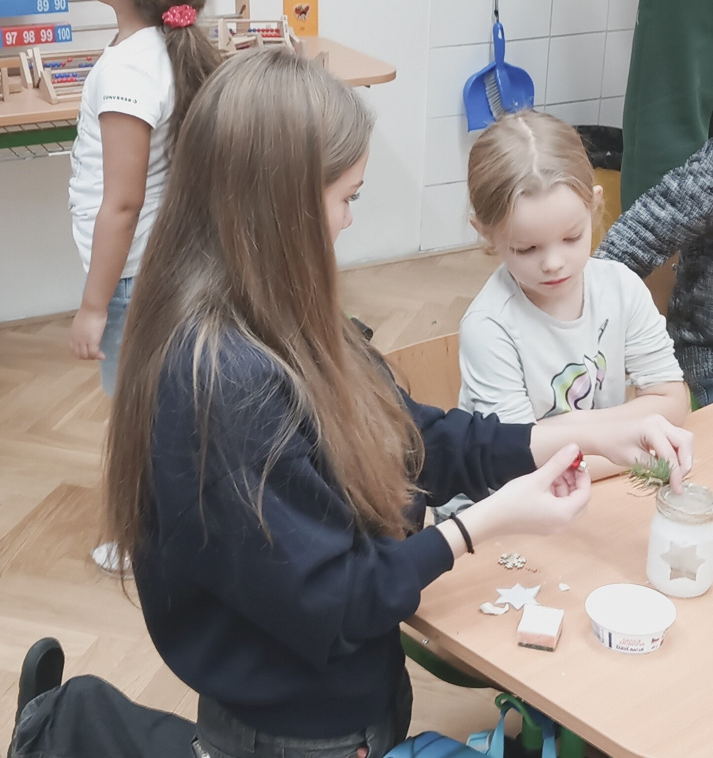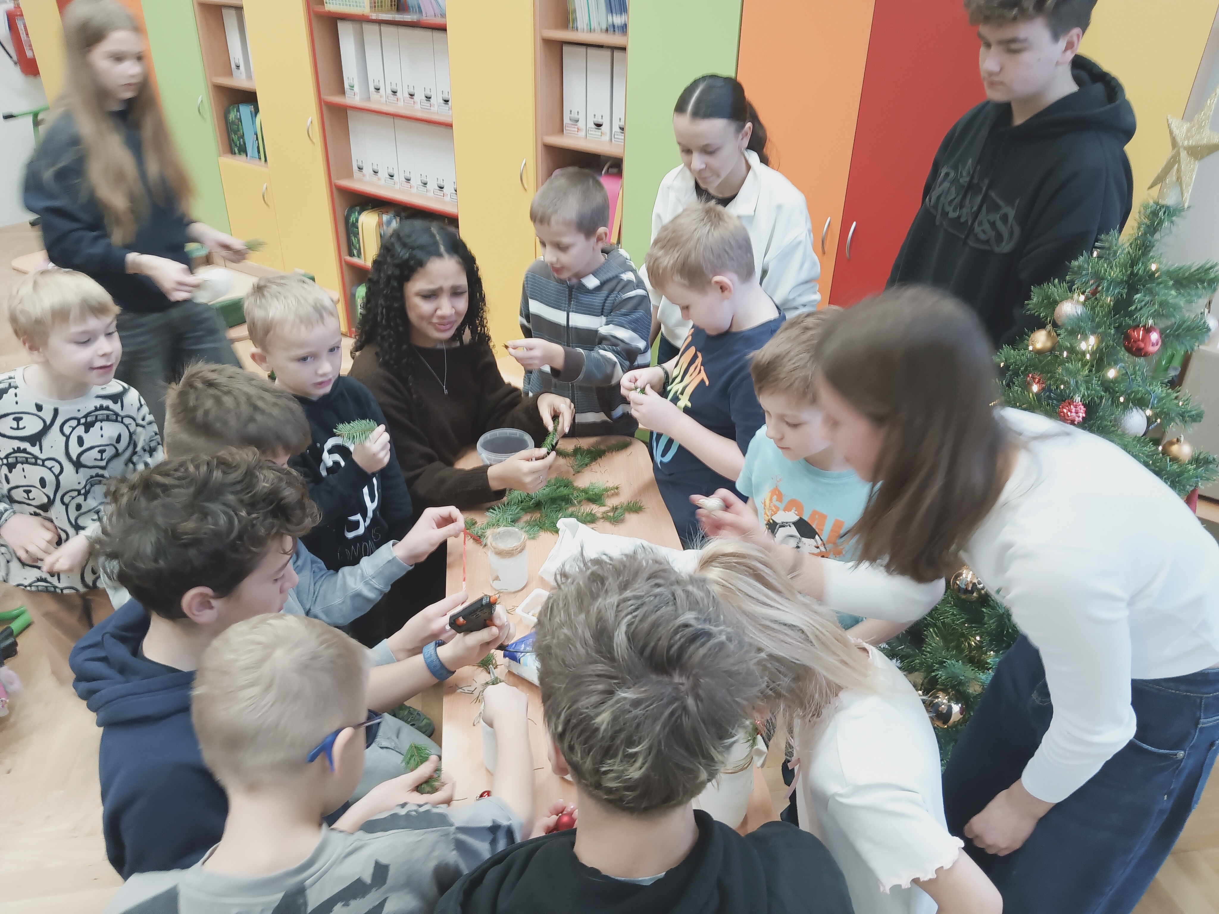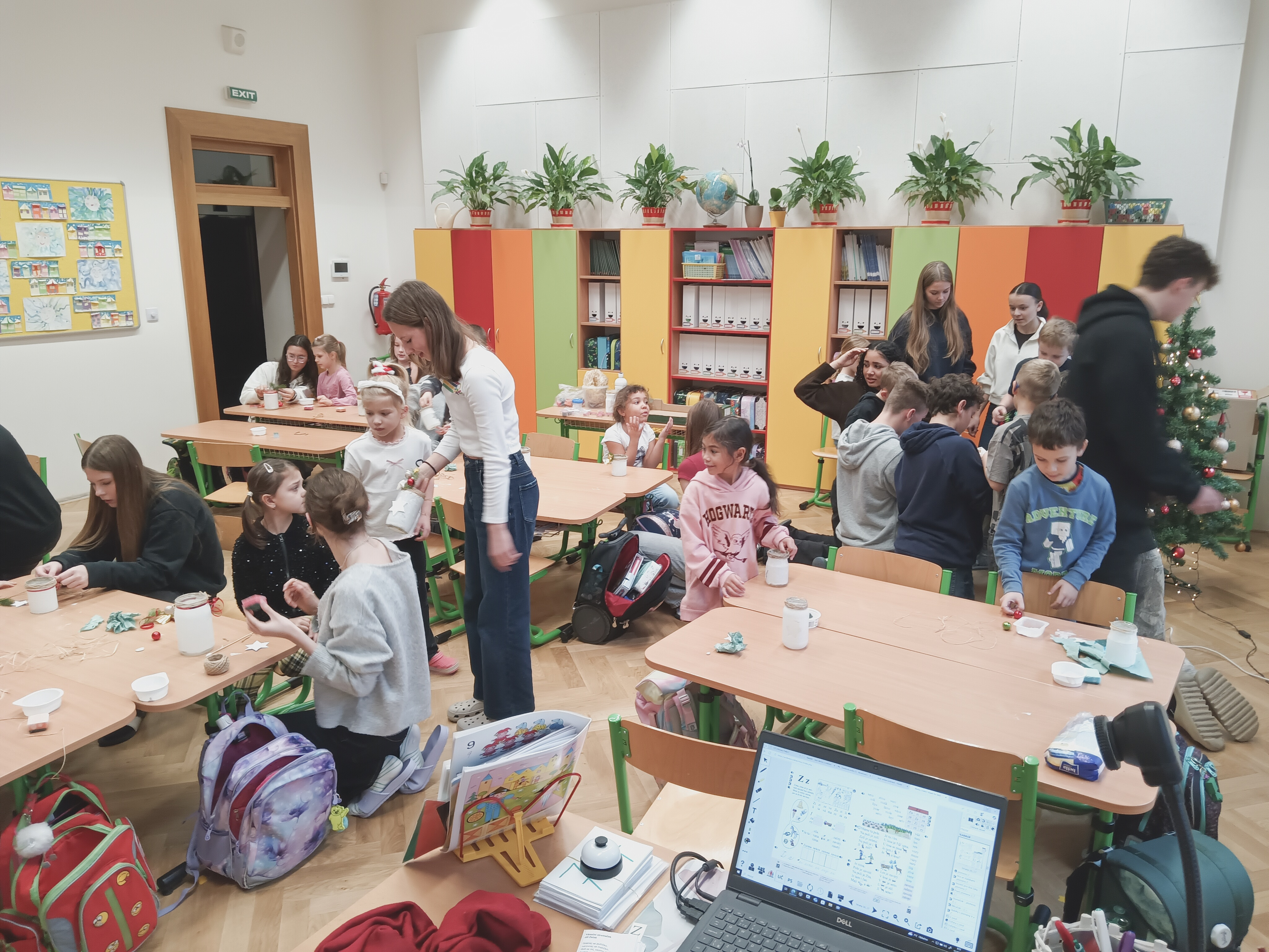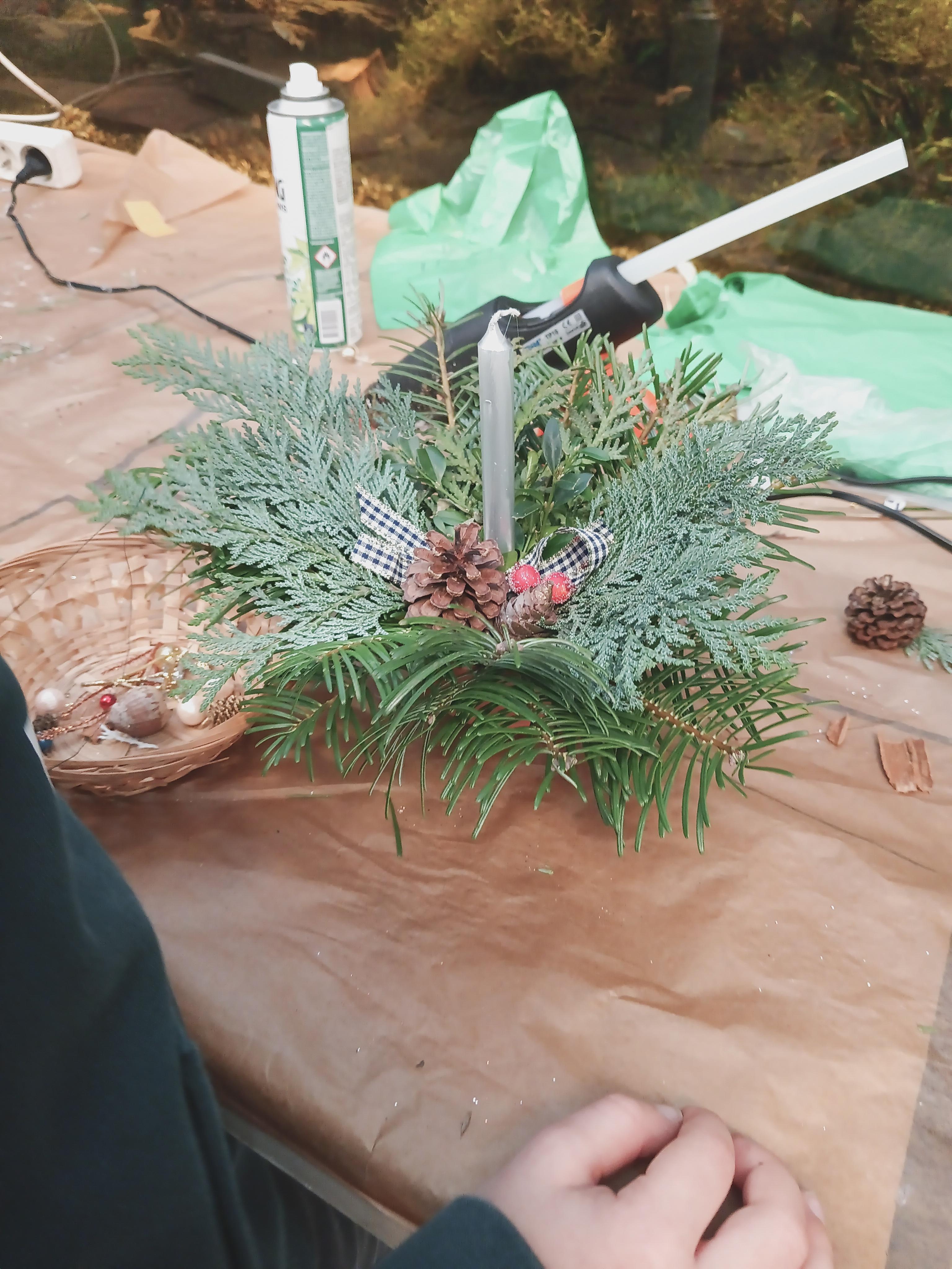 Blížil se čas vánočního jarmarku a my jsme se rozhodli, že přispějeme vlastnoručně vyrobenými svícny. Nápomocni nám byli kamarádi z 9.A. Všechny svícny se k naší spokojenosti prodaly. V přírodovědné stanici jsme vyrobili ještě jeden svícen, ale ten už jsme si odnesli domů pro potěchu našich maminek.