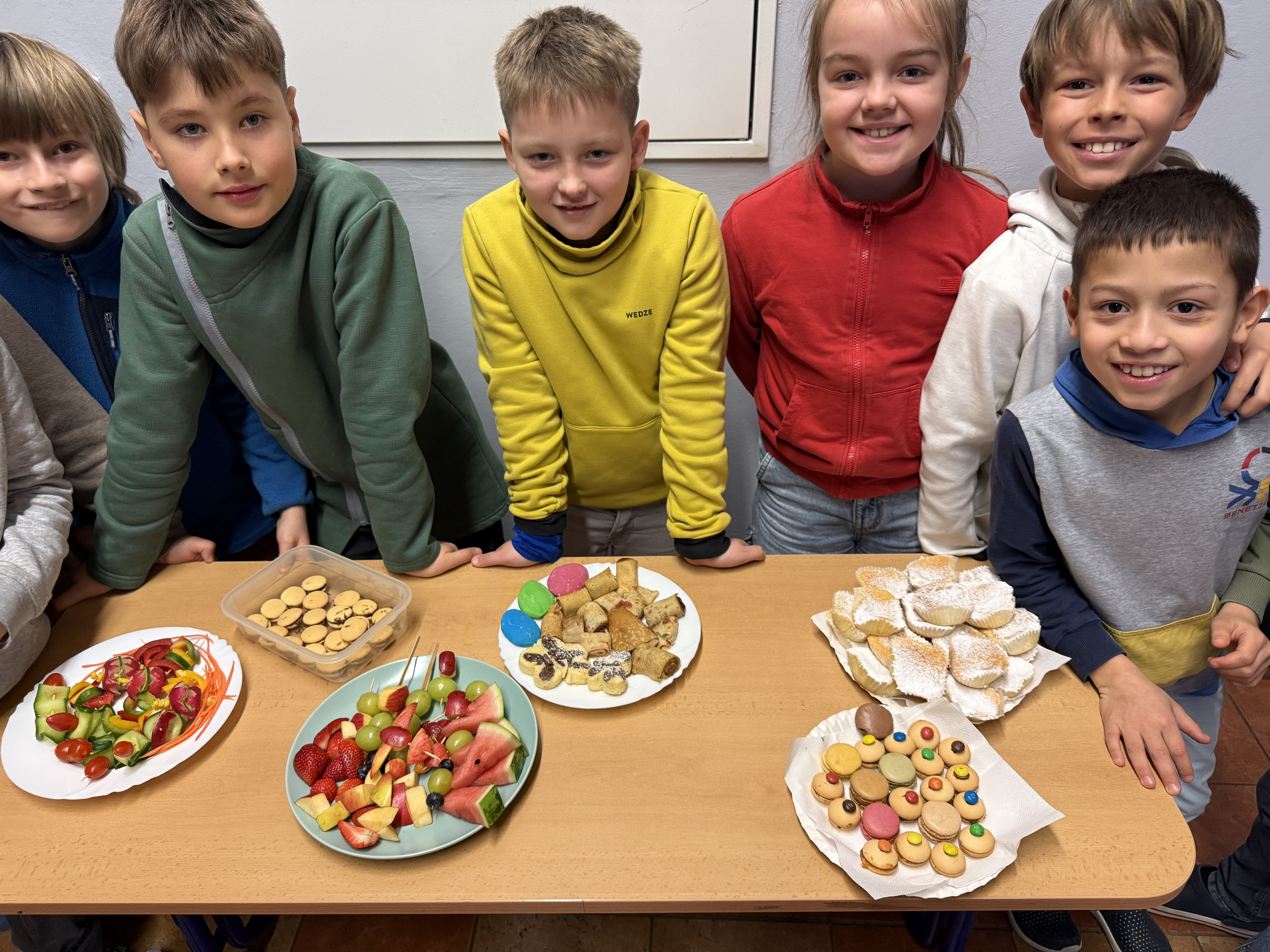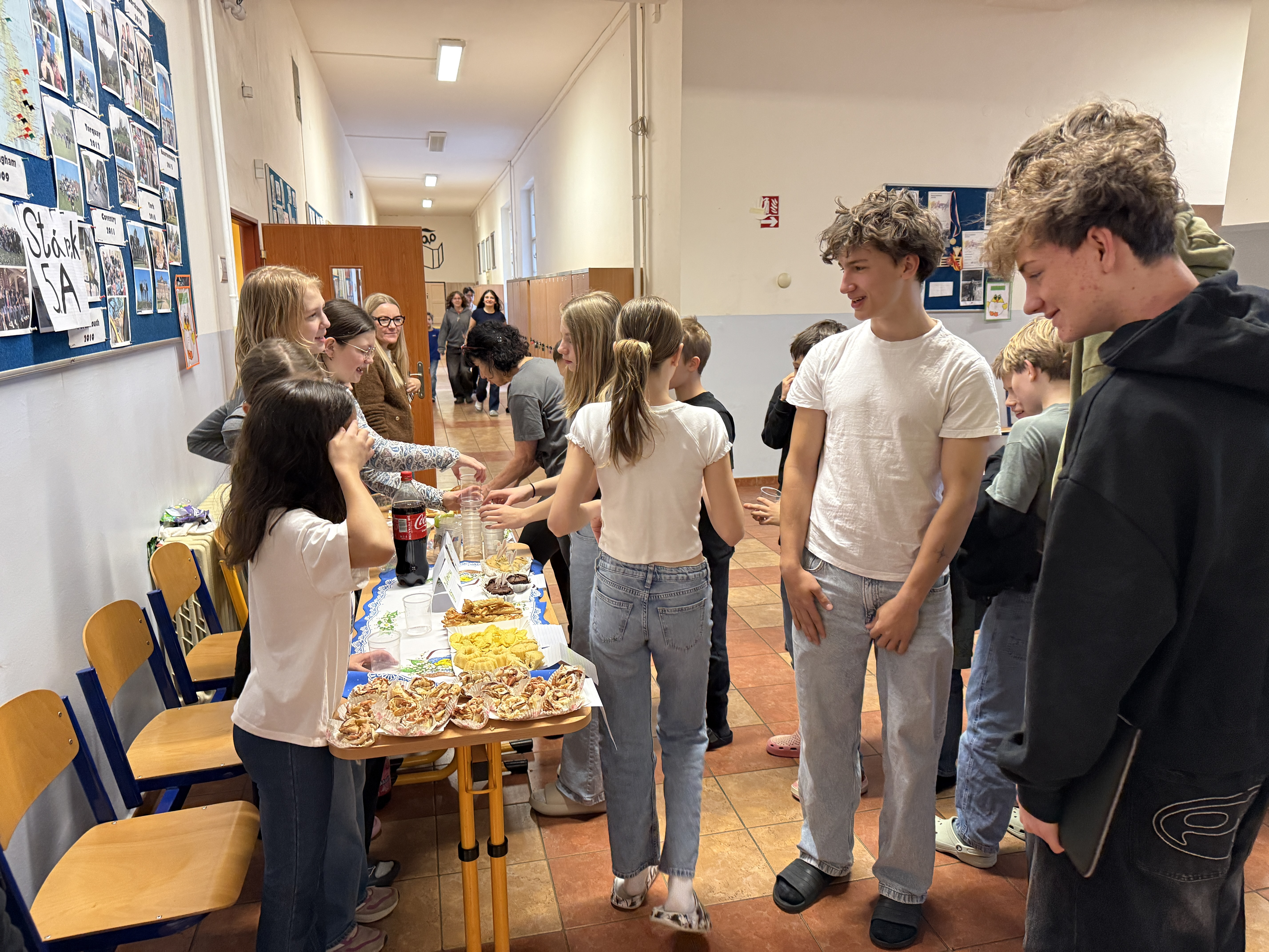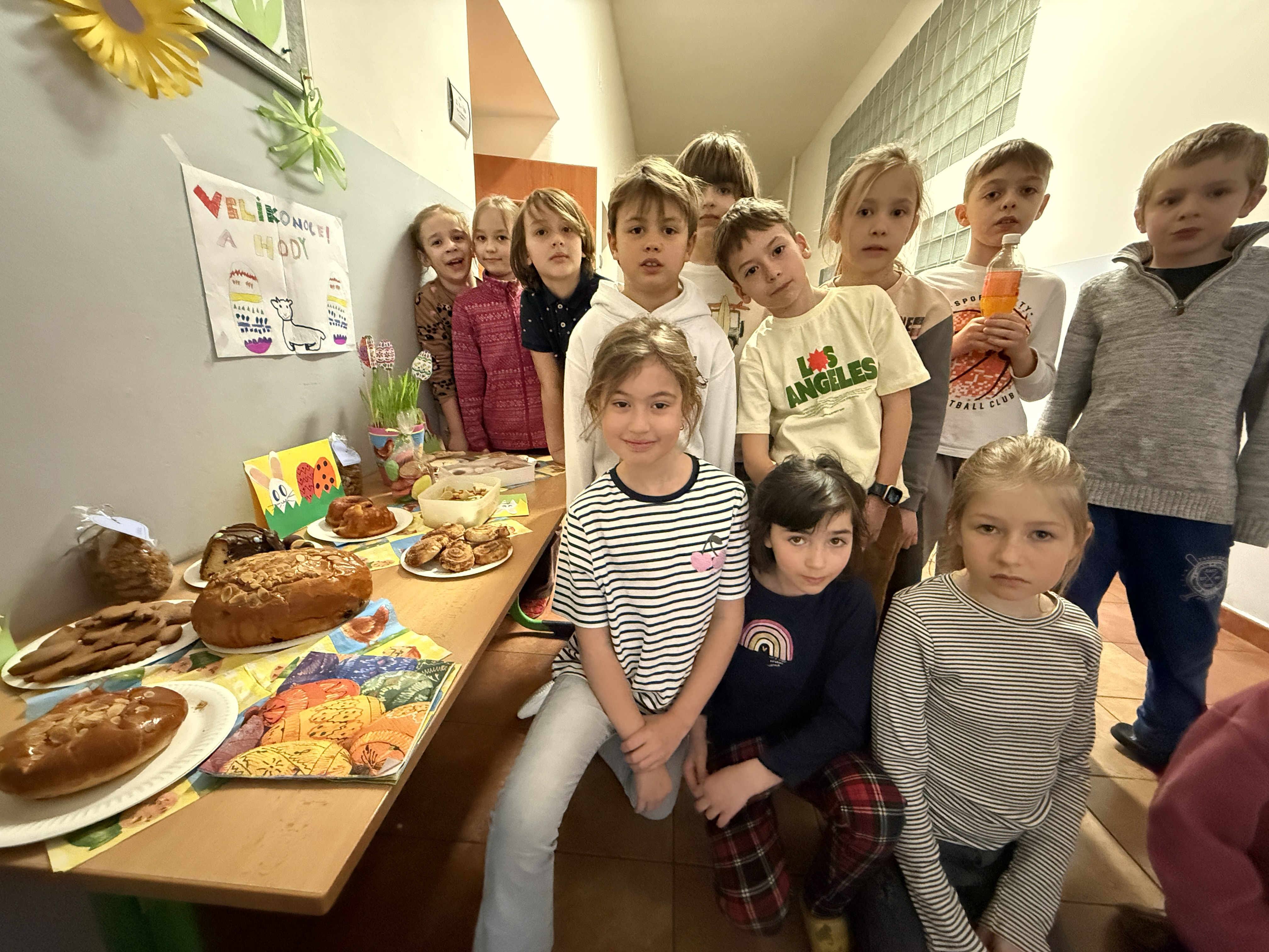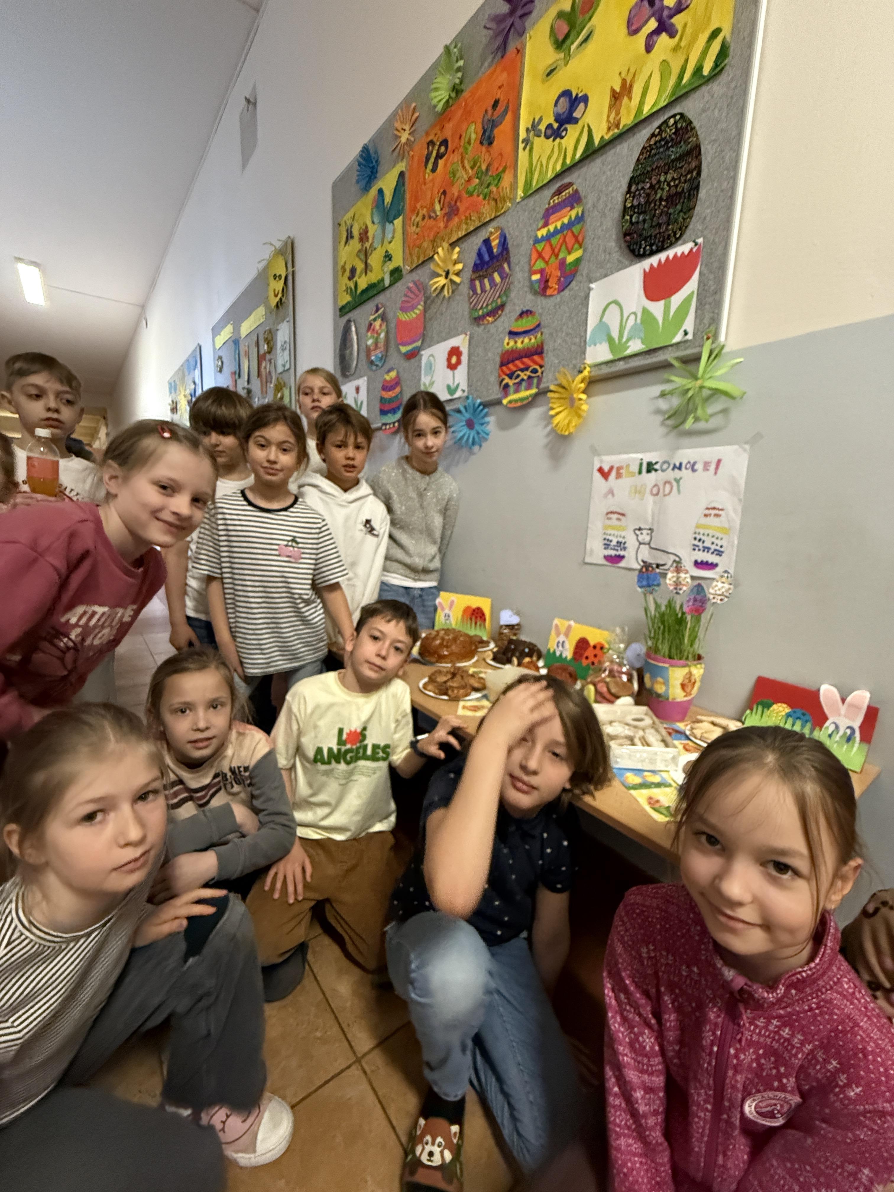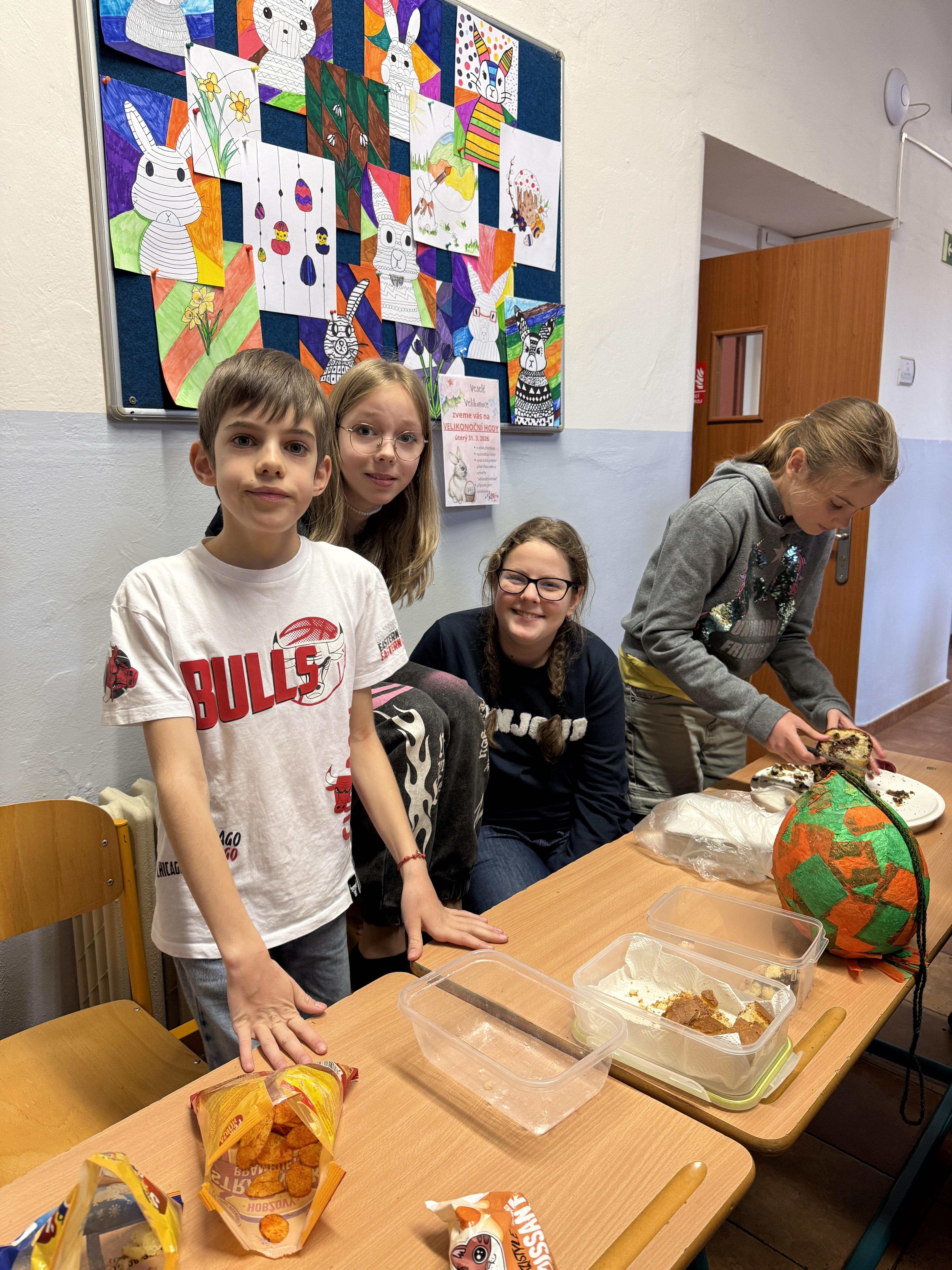 Na Šedivé úterý 31. 3. 2026 třídy 2. A, 3. A, 5. A a 5. B připravily VELIKONOČNÍ HODY. Žáci si před třídou postavili stánek a během velké přestávky nabízeli svým spolužákům drobné občerstvení.