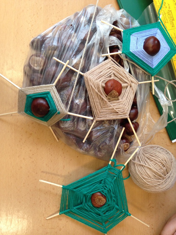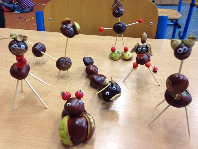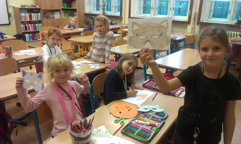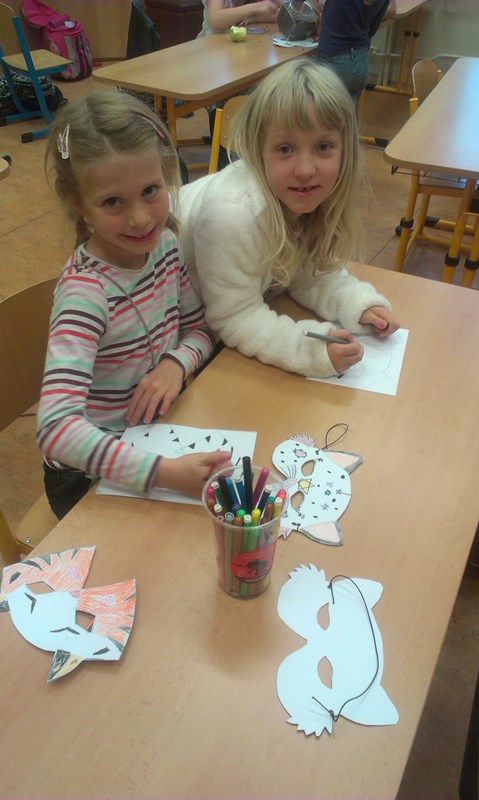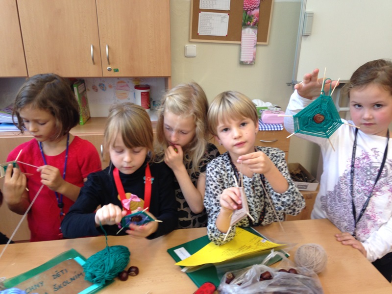 Tvořili jsme zvířátka z kaštanů a pavučinky ze špejlí a vlny. Ve čtvrtek 9. 10. 2014 plánujeme návštěvu Stanice přírodovědců, kde probíhá podzimní výstava rostlin a živočichů s odborným výkladem. Děti vyráběly masky na Halloween (viz fotografie níže).