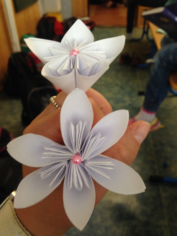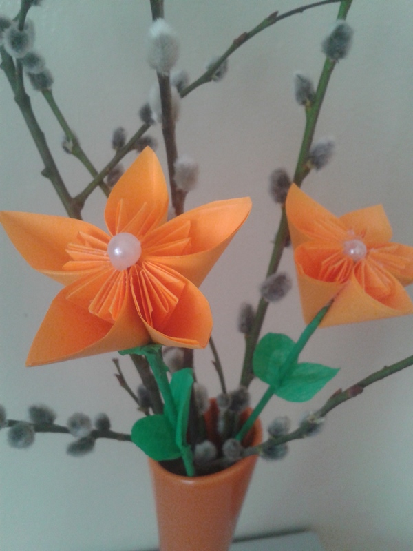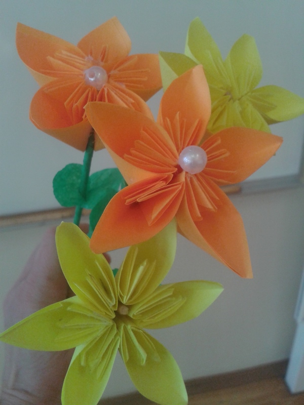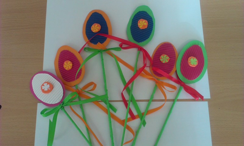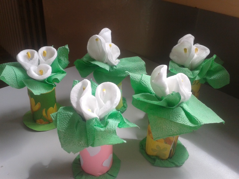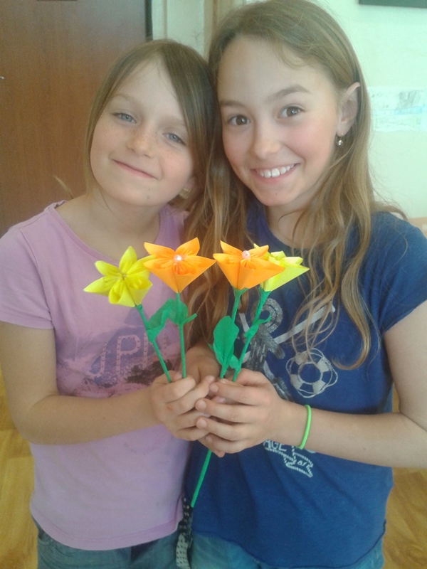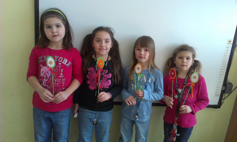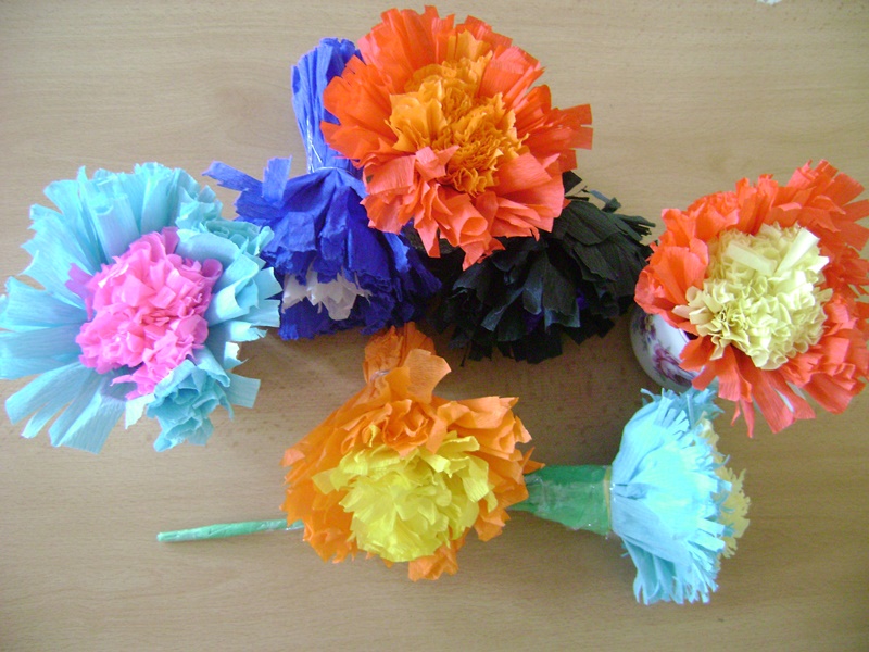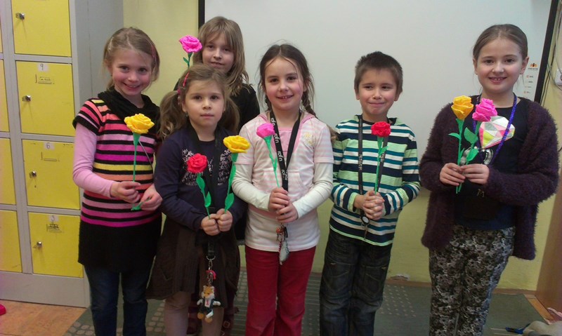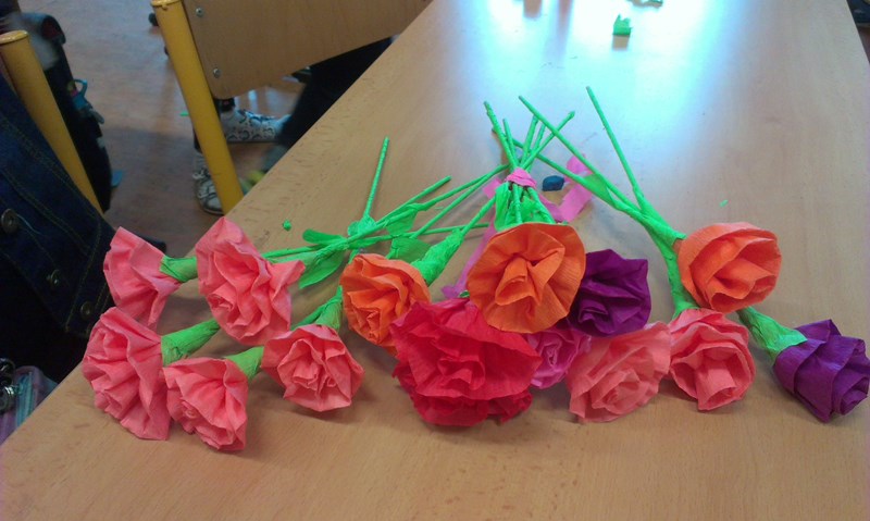 Maminkám jsme k svátku vyrobili kytičky.