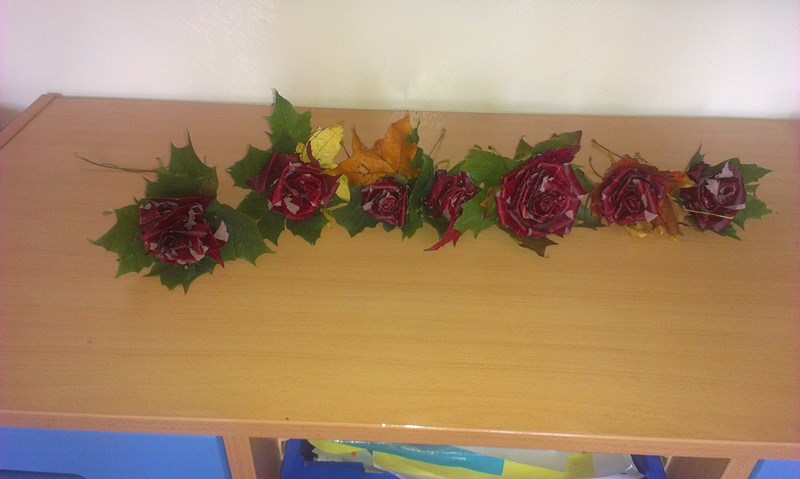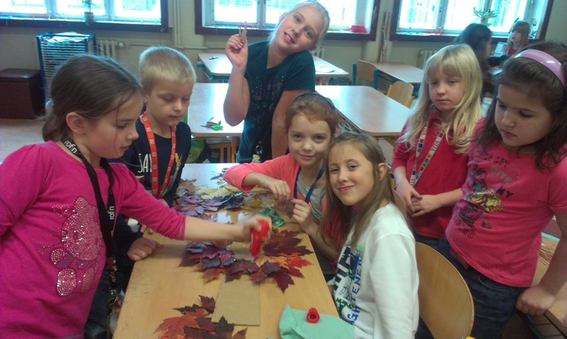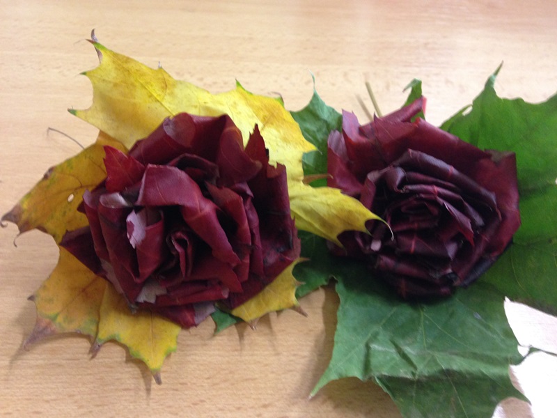 Druhý týden jsme vyrazili do parku Sacre Coeur nasbírat krásné barevné listy a učili jsme se z nich vyrábět růžičky.