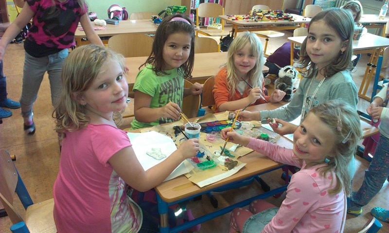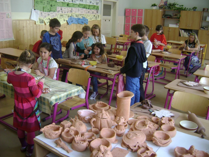 - podívali jsme se na spolužáky, kteří navštěvují kroužek keramiky, kdy nám p. učitelky Sýkorová a Beranová udělaly menší výklad