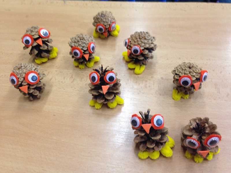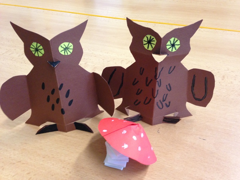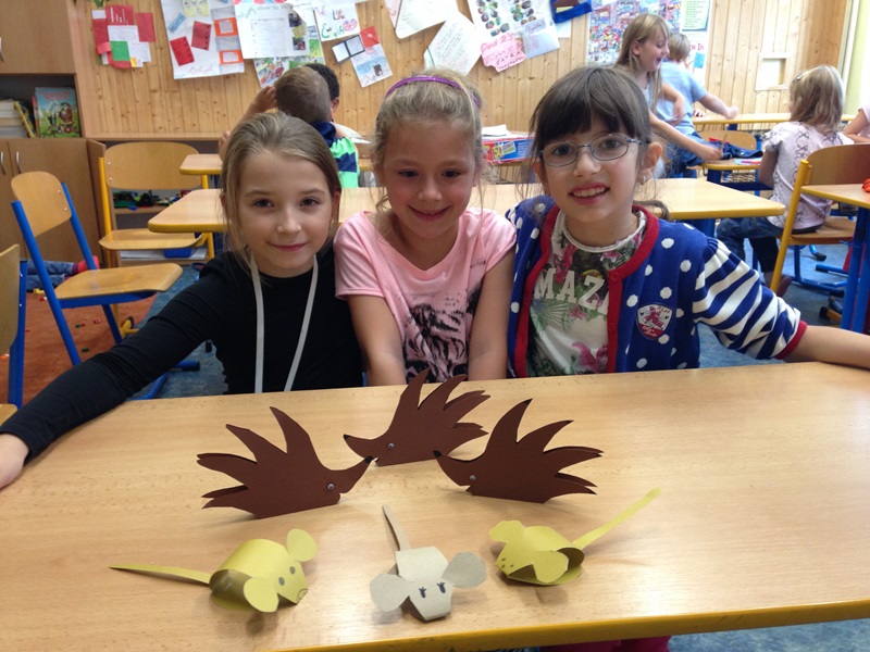 První týden v říjnu jsme vyráběli papírové ježky, sovy, myšky a muchomůrky.