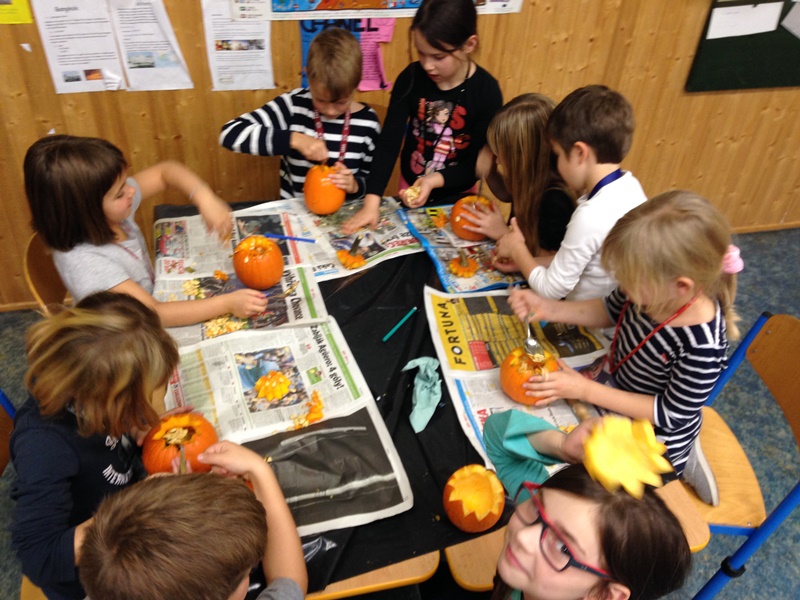Poslední týden si děti vydlabaly dýni, všechny to moc bavilo.