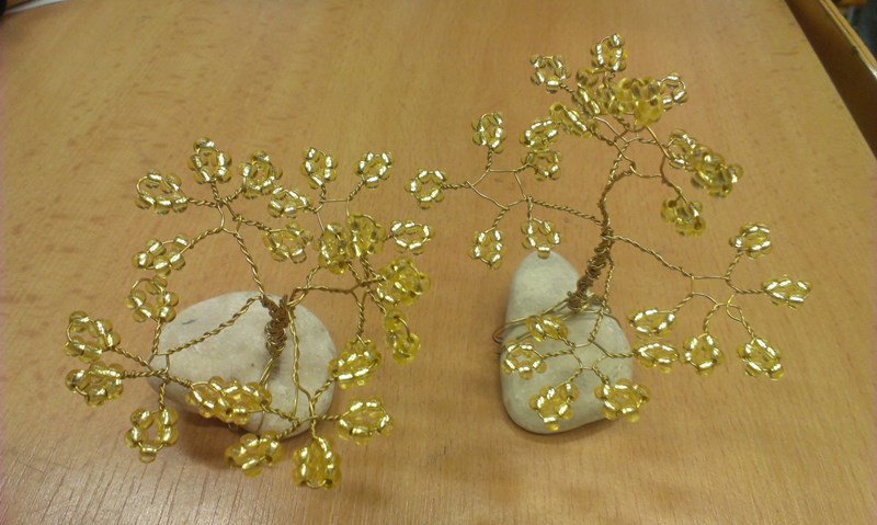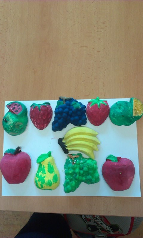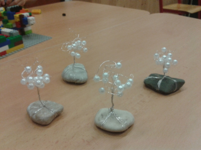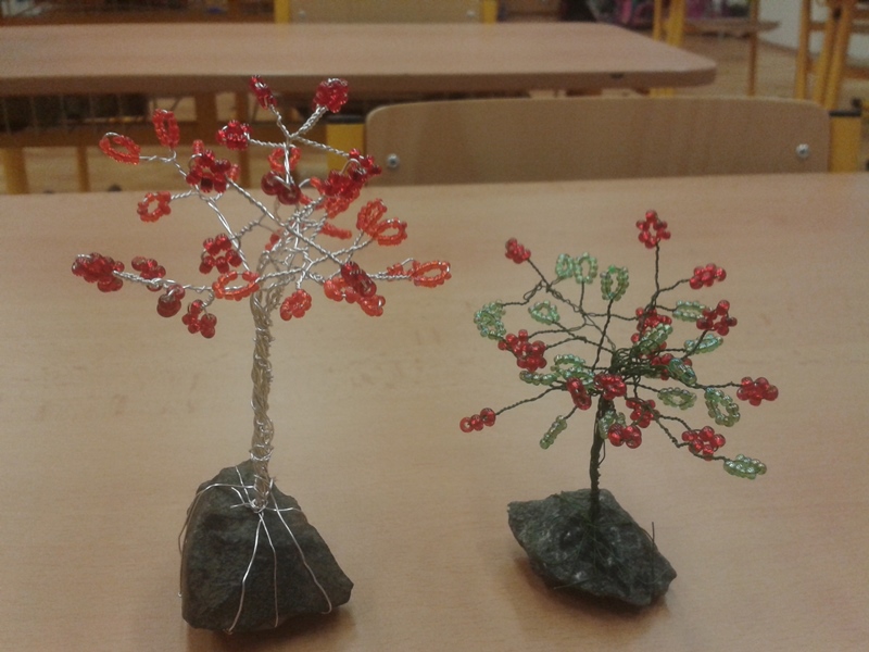 V říjnu jsme vyráběli ze sádry podzimní ovoce. Halloweenské masky nám velmi slušely. Vytvořili jsme také krásné stromečky z drátků a korálků.