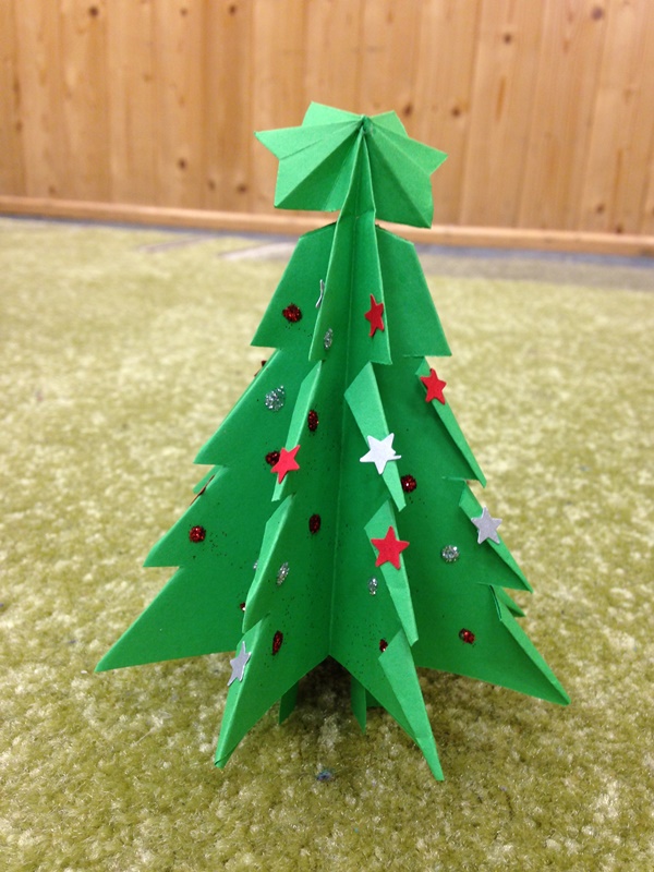 Vyráběli jsme papírové hvězdy na výzdobu školní jídelny.