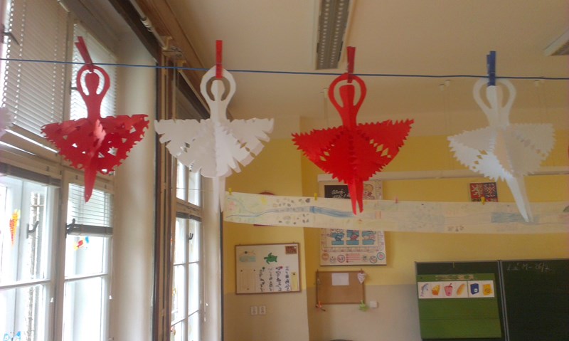Poslední týden v měsíci patřil stříhání papírových vloček, kterými jsme si vyzdobili okna naší družiny.