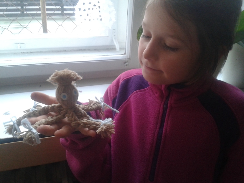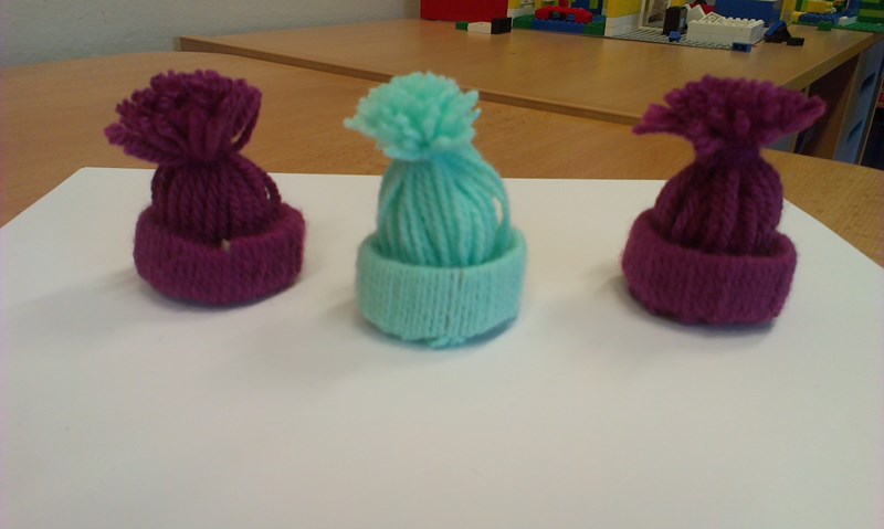 A protože je zima, vyrobili jsme pro panenky čepičky z vlny. Z vlny jsme si pak také upletli roztomilé chobotničky.