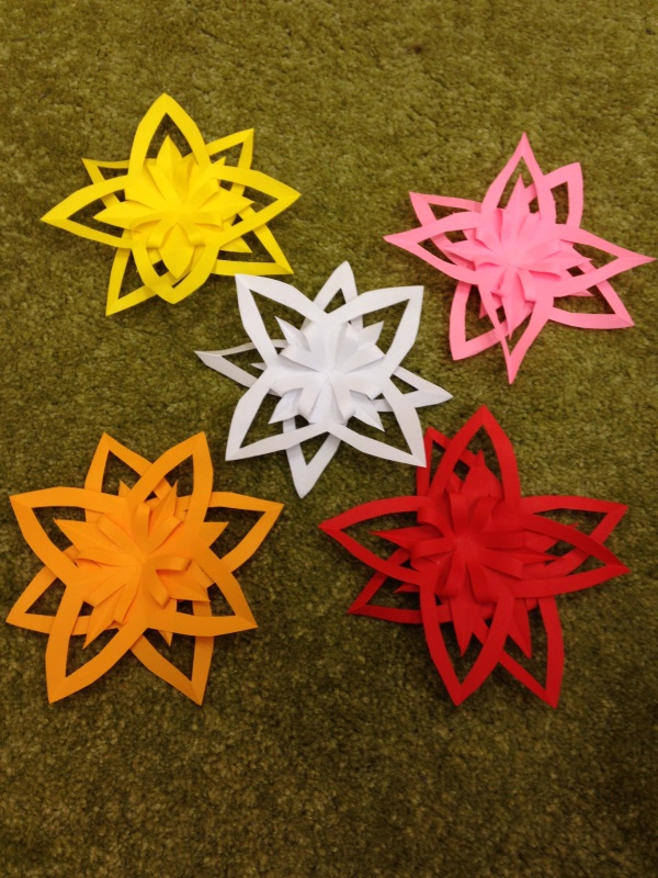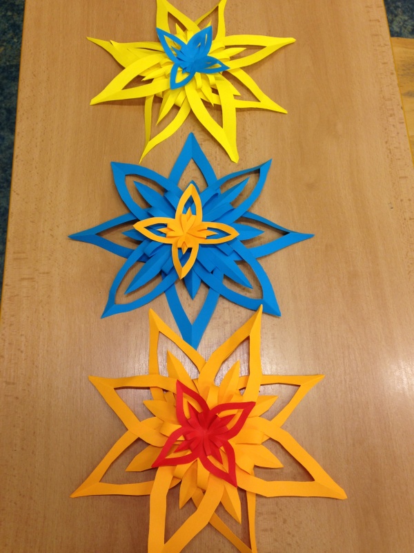 Papírové hvězdy, které jsme vyrobili další týden byly určeny na výzdobu školní jídelny.