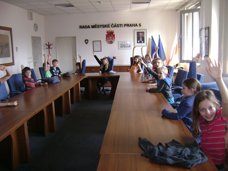 - 23. 4. Návštěva Městského úřadu Prahy 5 - stejně jako loni jsme se byli podívat na radnici. Děti se aktivně zapojily do besedy i do soutěže. Všechny obdržely malé drobnosti a dozvěděly se zajímavé informace.