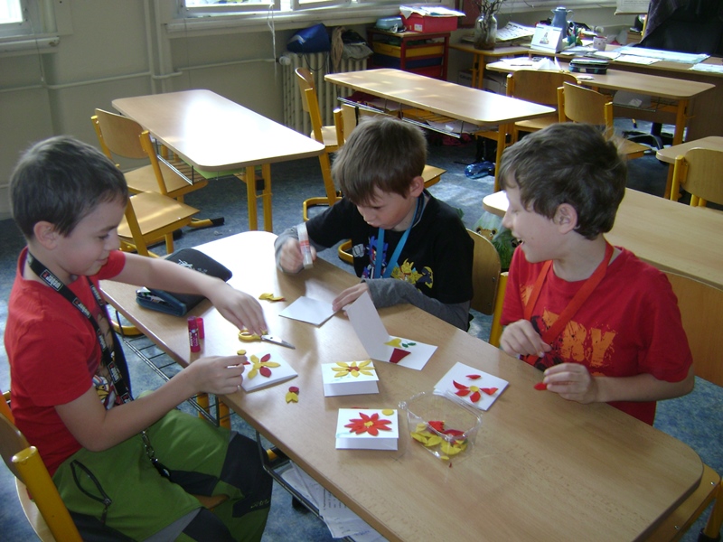 Výroba přání ke Dni matek.